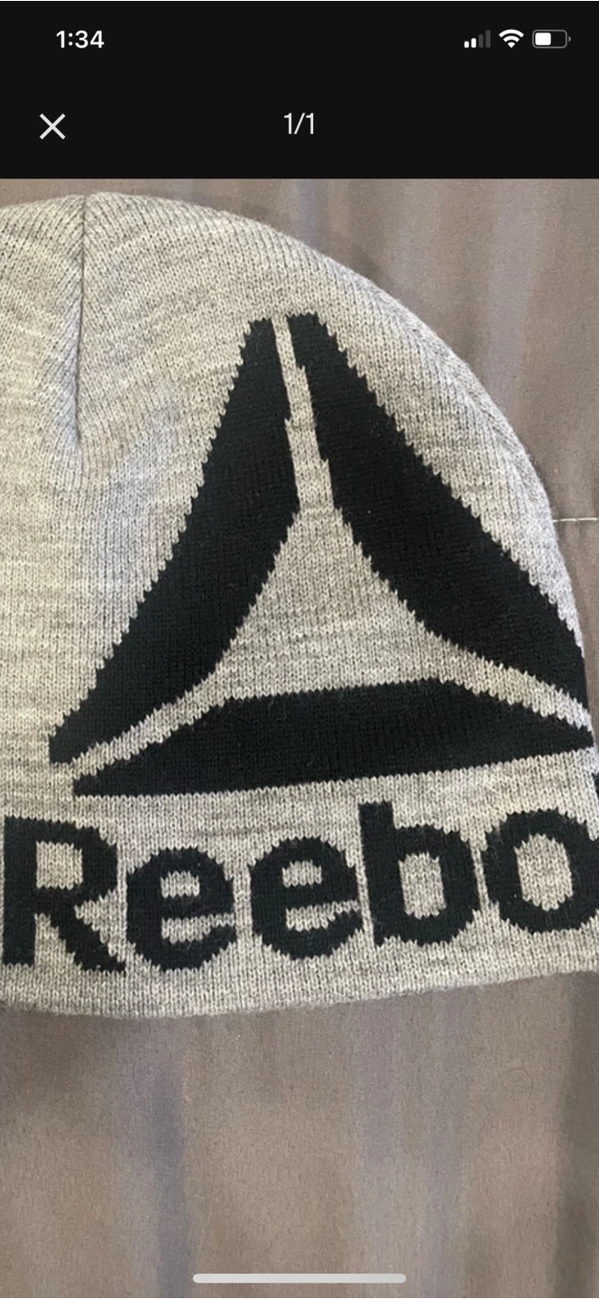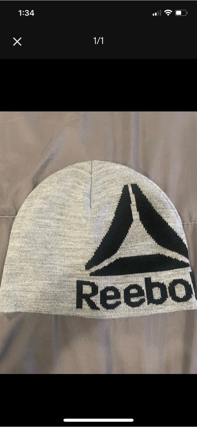 312Selling a grey Reebok Hat It features the Reebok logo in black on the front. Perfect for keeping warm on chilly days Brand new, never worn !