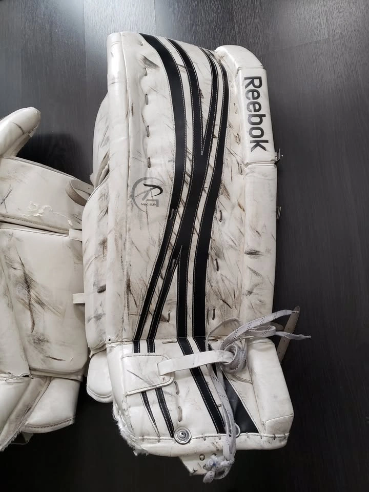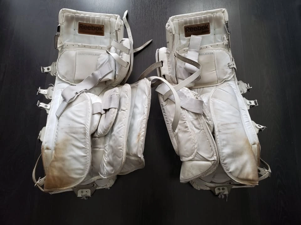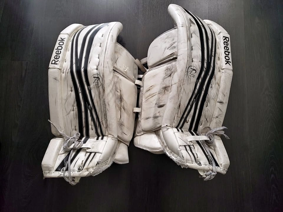 Selling Reebok P14 size 32 +1 goalie pads in good condition.