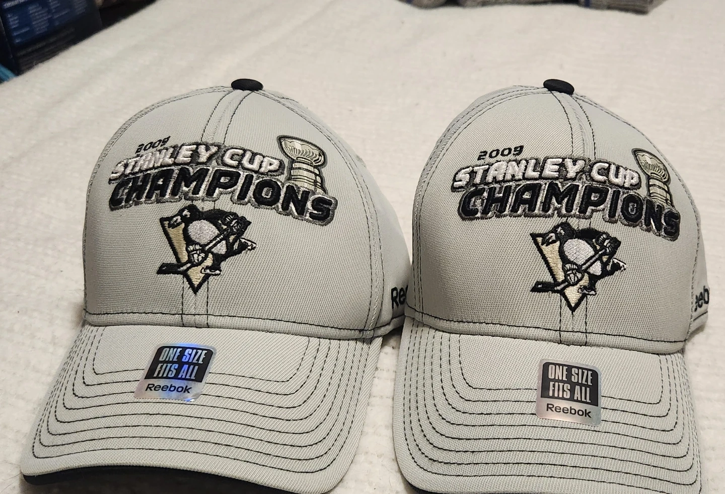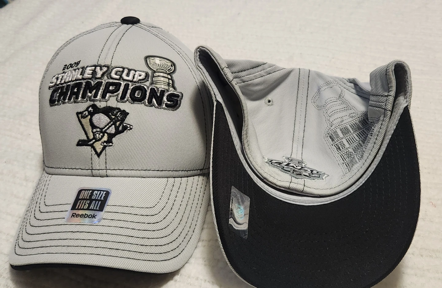 141Selling a Reebok Pittsburgh Penguins 2009 Stanley Cup Champions hat. It's in great condition and is ONE SIZE fits all. Perfect for any Penguins fan! Never worn still has the head band protection inside. Great for any hockey fan. Asking $50 for the pair or $30.00 each.