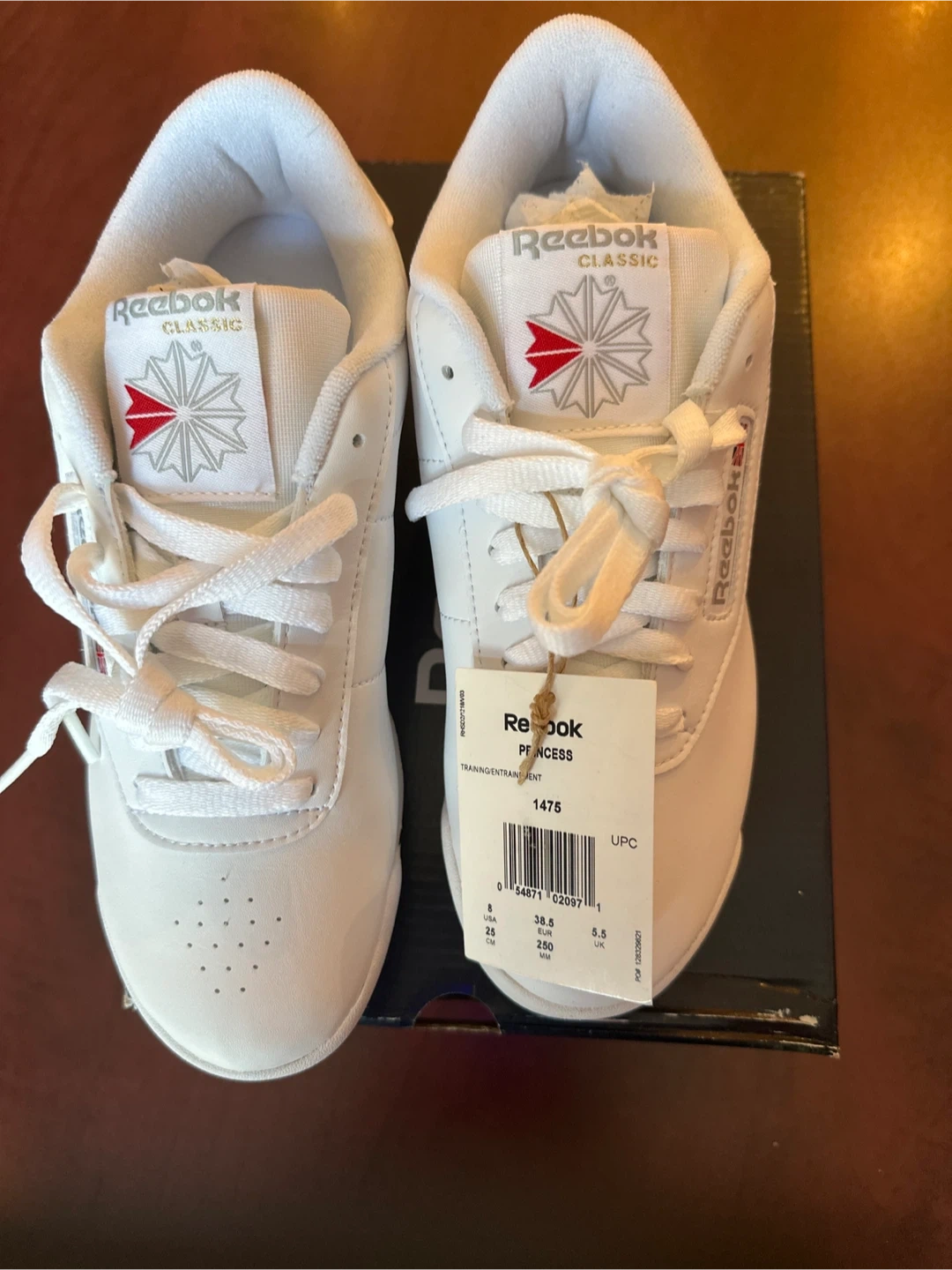 I have 2 pairs of brand new womens Reebok Princess shoes SIZE 8 for sale. $50 each or $90 for both pairs.