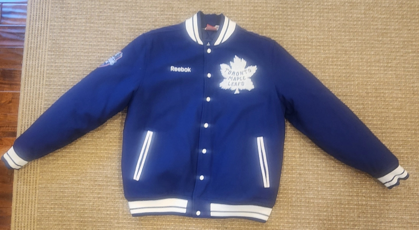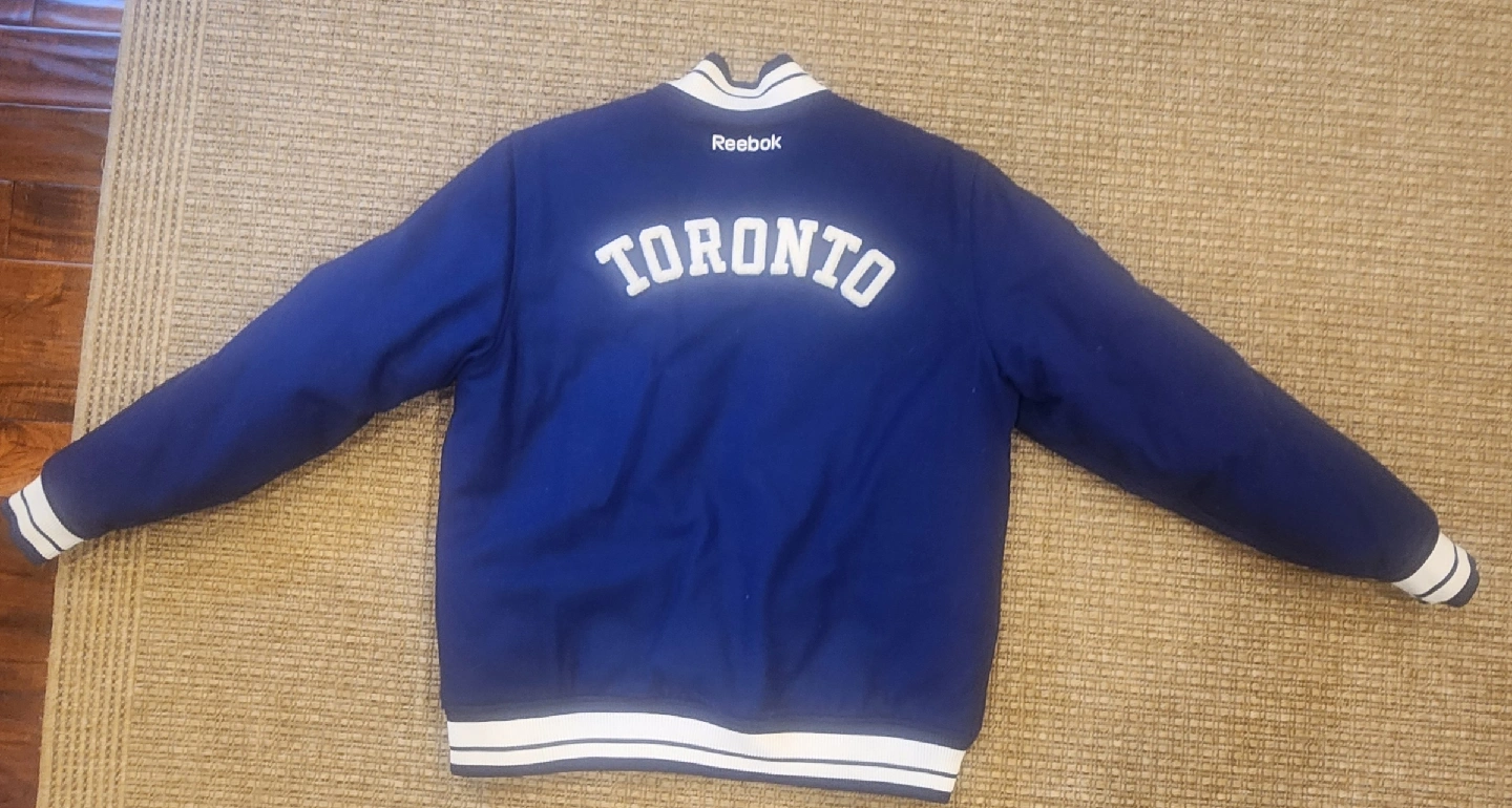 15Selling a Reebok Toronto Maple Leafs bomber jacket! It's in great condition and features the classic Leafs logo. Perfect for any hockey fan! Large