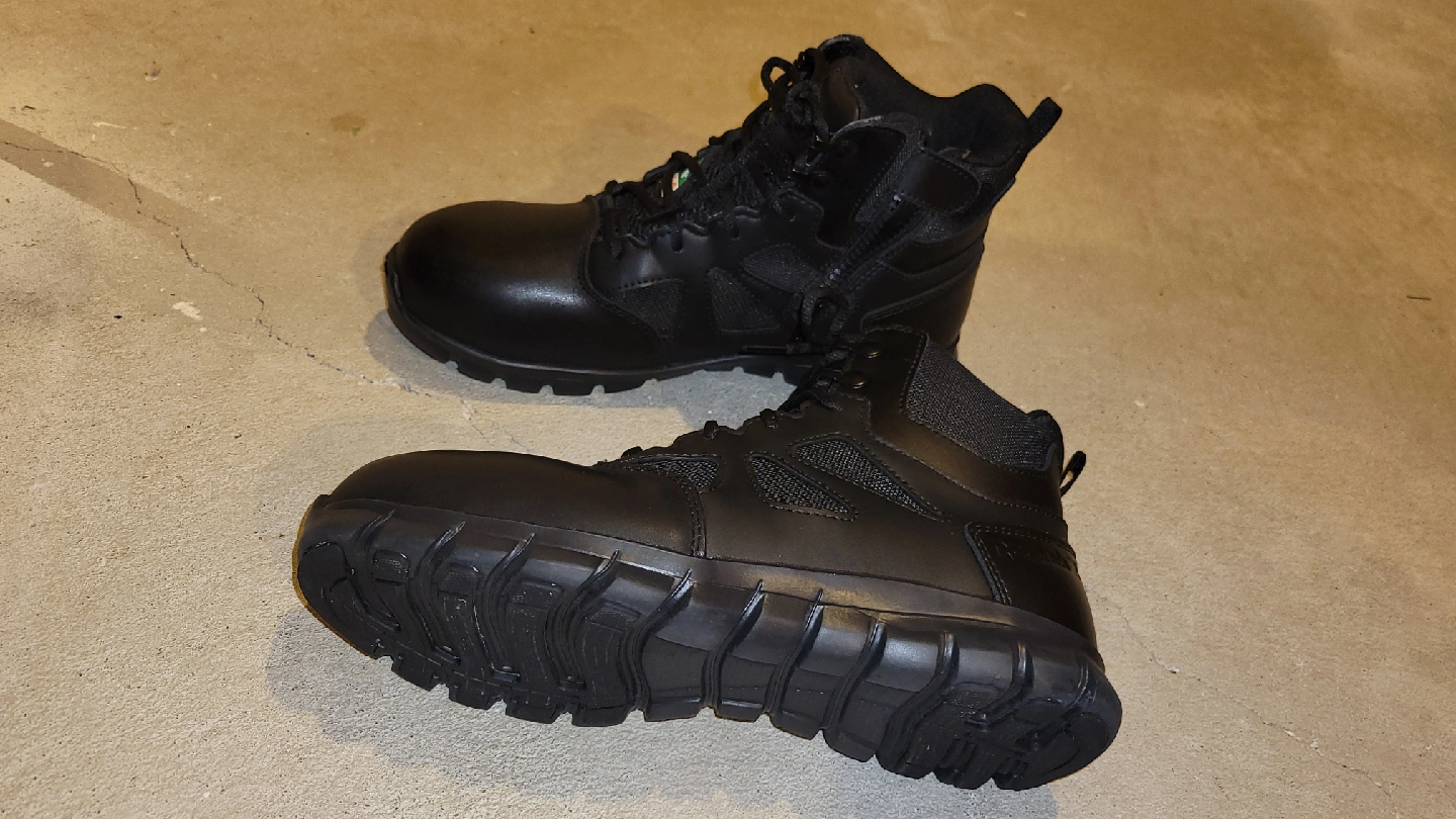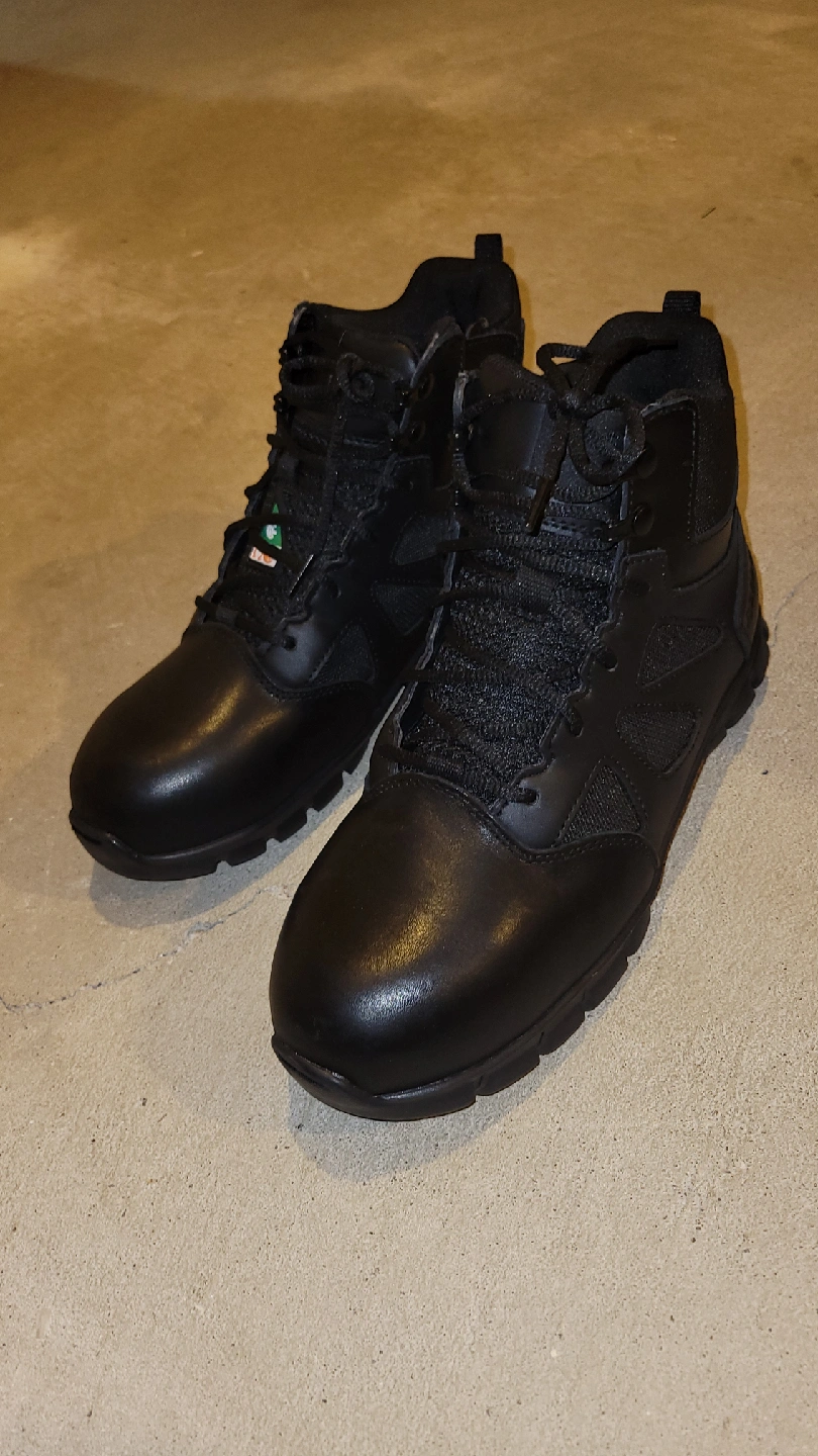 75Selling a pair of Reebok Work Leelap safety boots in black leather. These boots are in great shape and ready for work. They are designed for comfort and protection on the job site. Perfect for anyone needing reliable footwear! Oil resistant and slip resistant