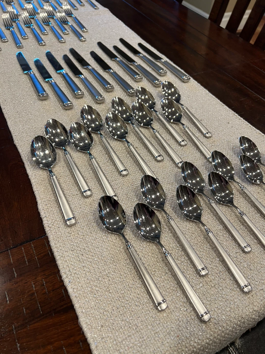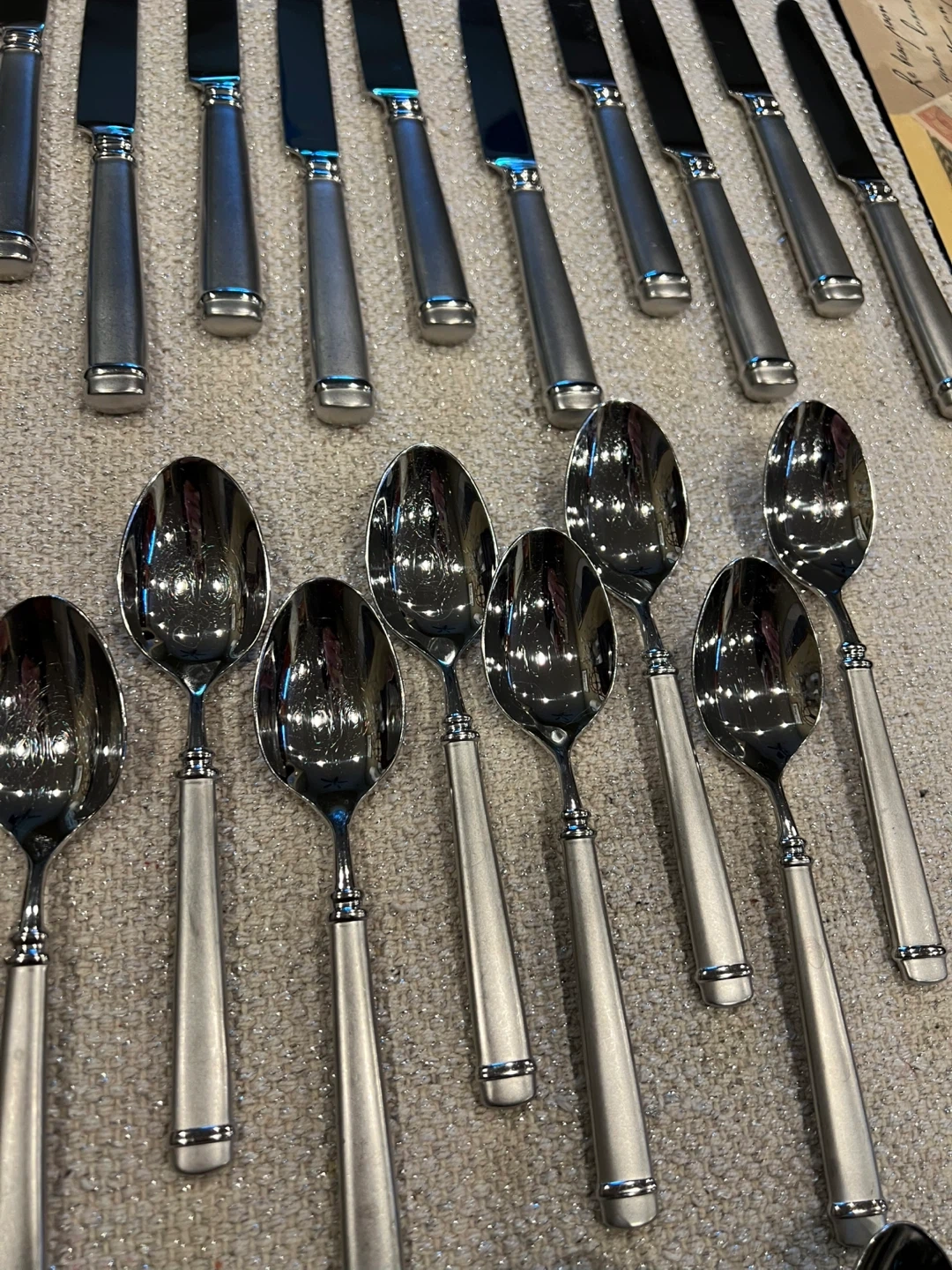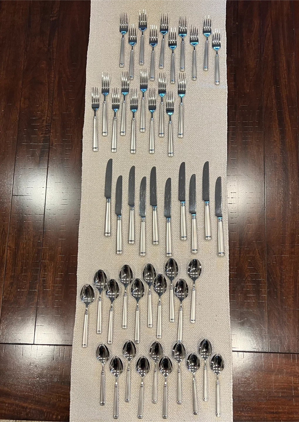 Reed & Barton Flatware Set 50 pieces total (service for 10 people) Each place setting has a dinner fork, salad fork, dinner knife, tablespoon and a teaspoon High quality stainless steel Beautiful set Great preloved condition Dishwasher safe Asking $85 Interested? Message me and please check my other listings…