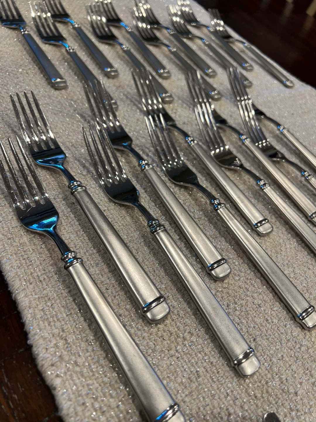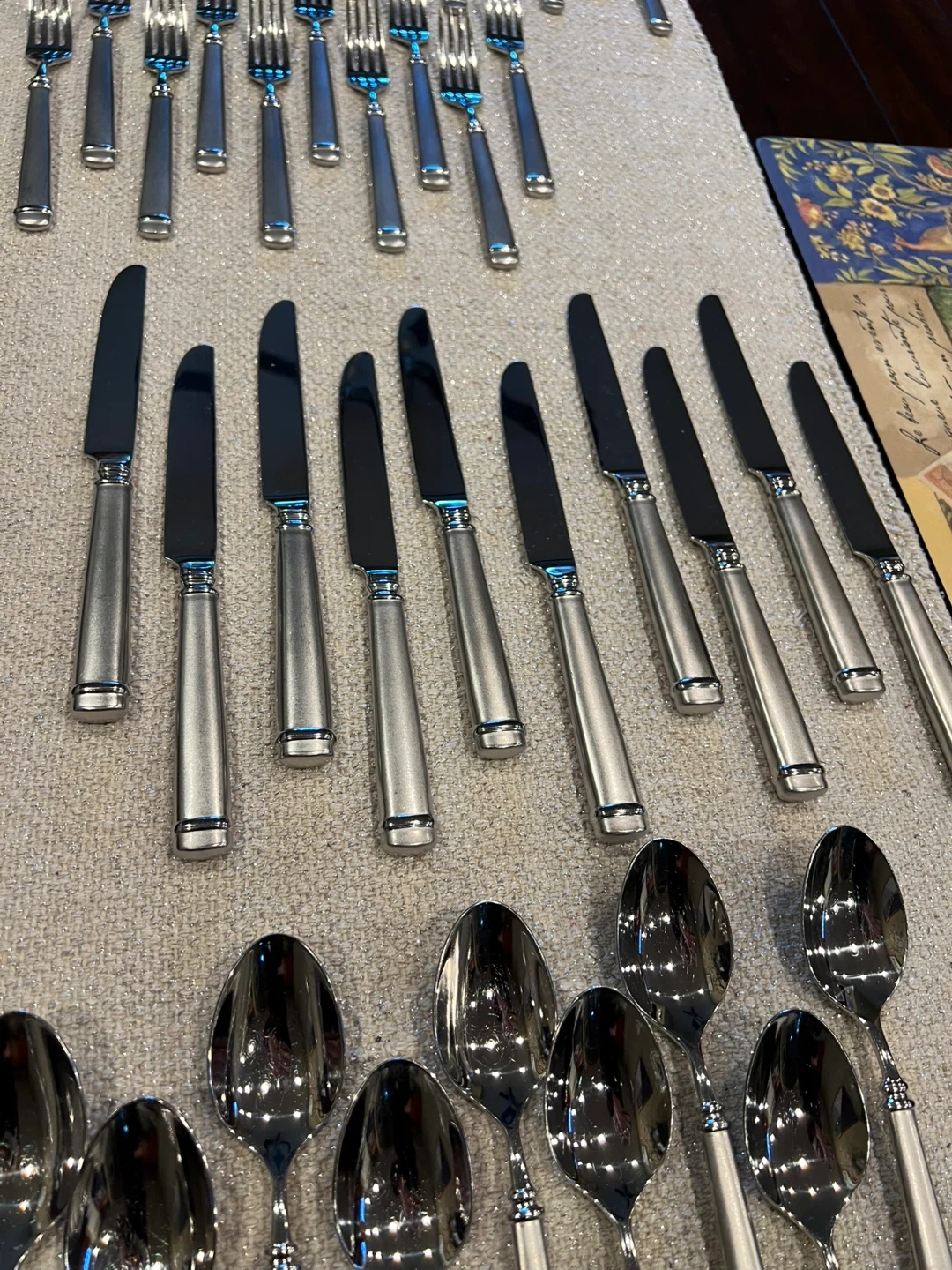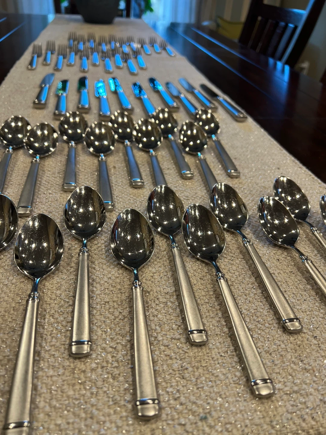 Reed & Barton Flatware Set 50 pieces total (service for 10 people) Each place setting has a dinner fork, salad fork, dinner knife, tablespoon and a teaspoon High quality stainless steel Beautiful set Great preloved condition Dishwasher safe Asking $85 Interested? Message me and please check my other listings…