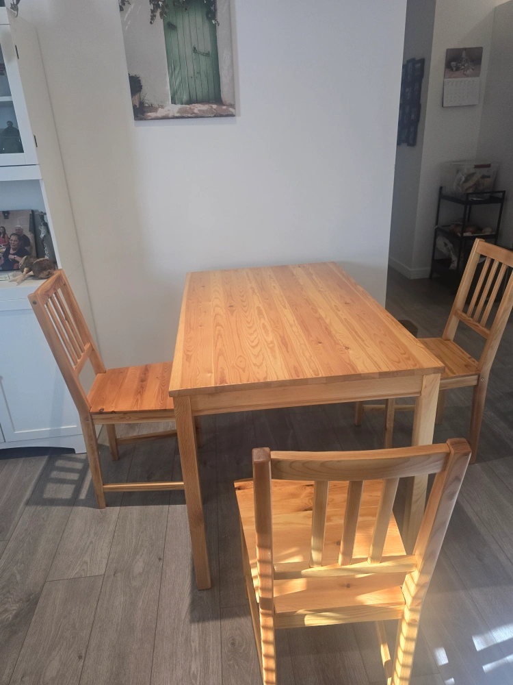 Show allrefinished IKEA Pine Dining Table & 3 Chairs