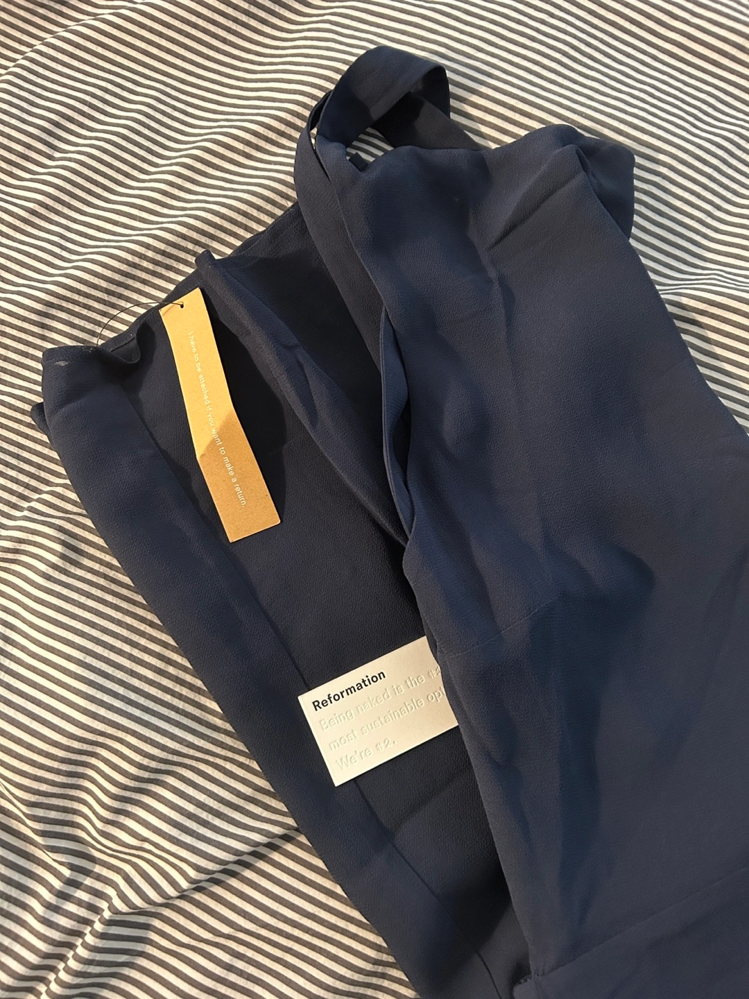 Selling a brand new Reformation Ladri Dress in Navy. It doesn’t fit me like I thought it would. - Non-adjustable straps, cowl neckline, back slit. - Elastic waistband. - This is a lightweight georgette fabric with a dry handfeel - 100% viscose. Dry clean only. More on fabric & care. Original price: $443