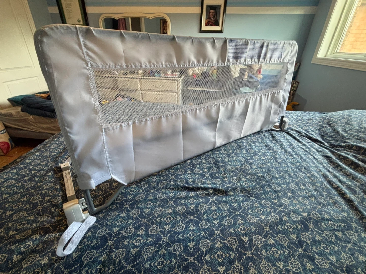 75Selling a Regalo bed rail in white. It's in great condition and perfect for keeping your little one safe and sound in bed. Easy to install and provides peace of mind!