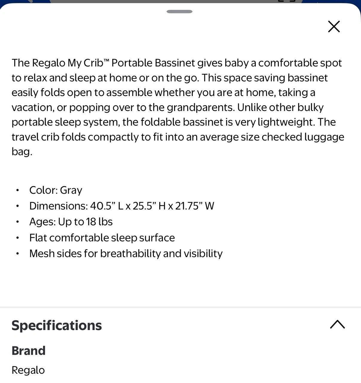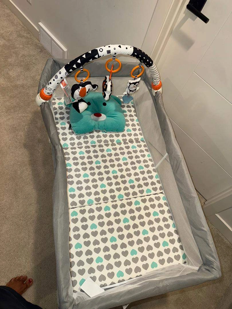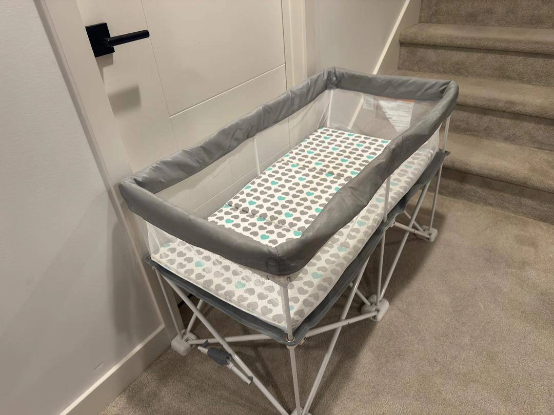 10Regalo Portable Bassinet. Age - Up to 18lbs. Comes with free pillow, crib toys and storage bag. Pick up at Walden SE Calgary.