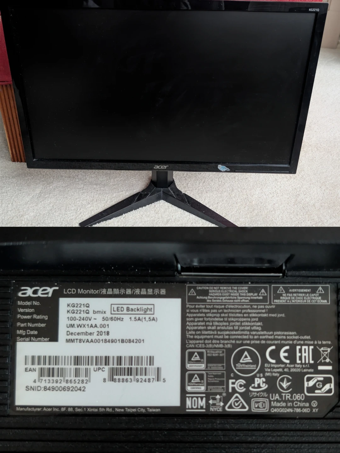 Selling an **Acer KG221Q bmix** LED monitor in good working condition. Ideal for work-from-home, school, or as a secondary monitor.