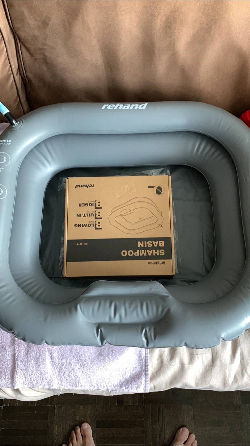 Selling a brand new Rehand Inflatable Shampoo Basin, still in its original box! It's designed with a built-in pillow for extra comfort and is easy to inflate and deflate. Perfect for anyone needing a convenient and comfortable way to wash their hair at home