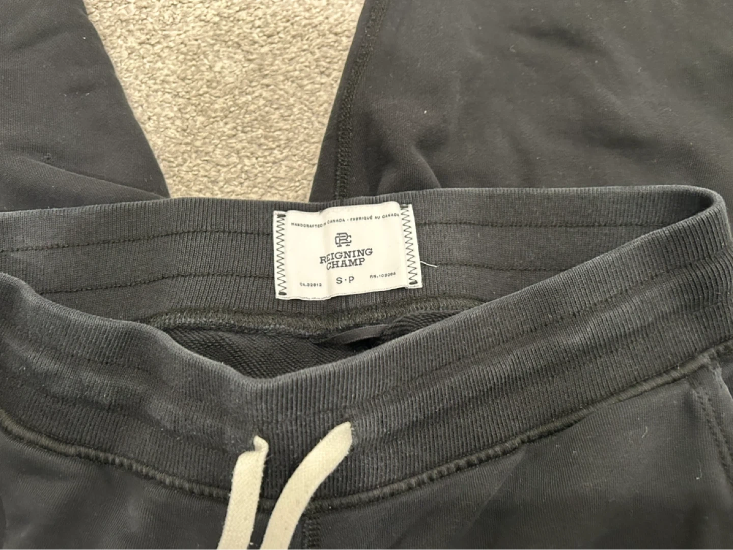 60Selling 2 pairs of Reigning Champ Classic sweatpants in size small. One is black and the other pair a a charcoal grey They're in great condition and super comfy! Perfect for lounging around or running errands.