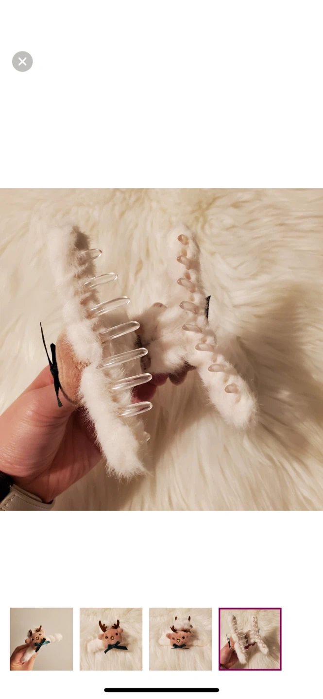 601This adorable reindeer hair claw clip is the perfect accessory to add a touch of whimsy to your look! It features a cute reindeer design with soft, furry accents and a little green bow. It's in great condition and ready to find a new home! Pick up: Suntea on Kingsway Royal Oak skytrain station Metrotown Mall