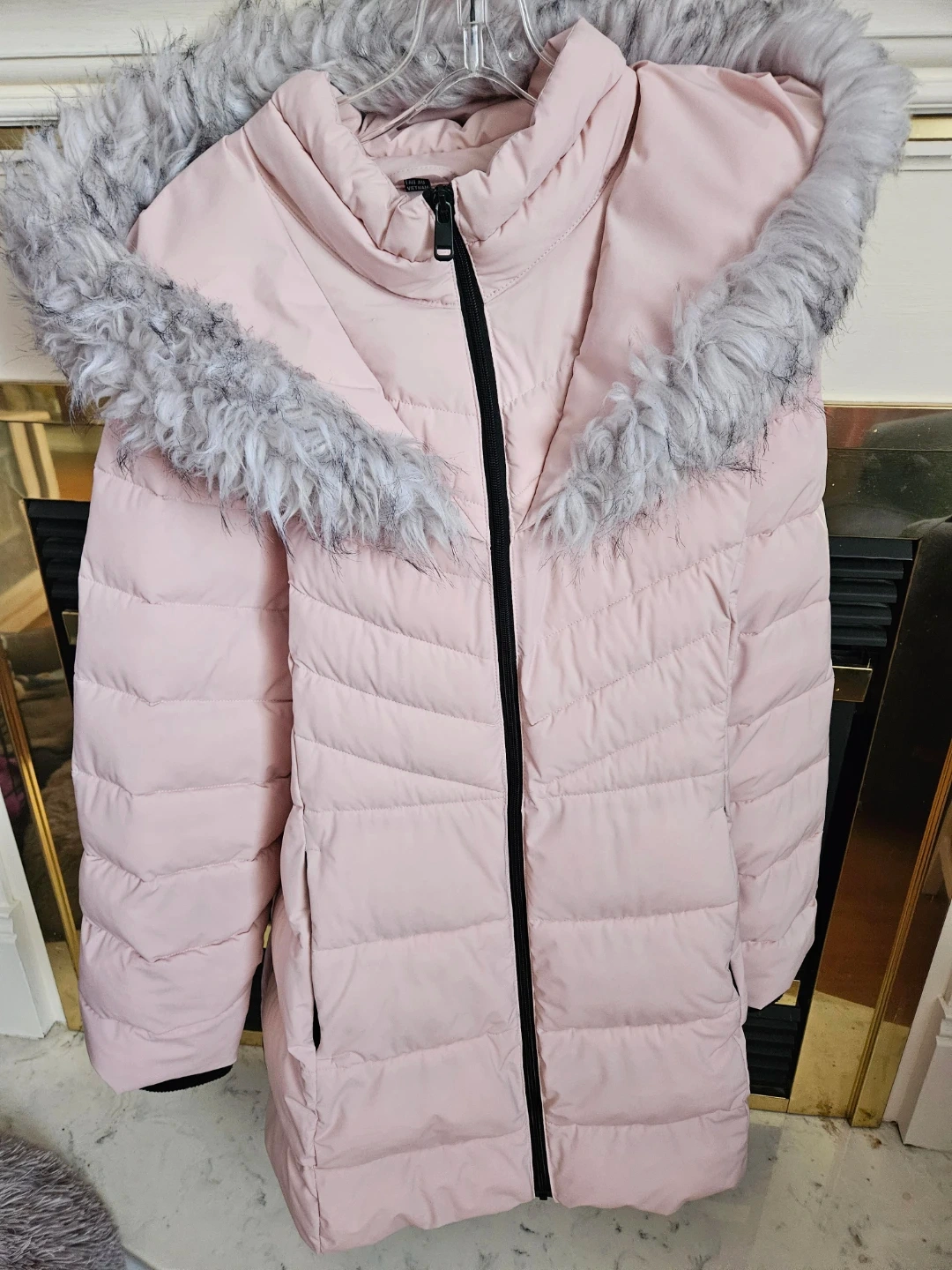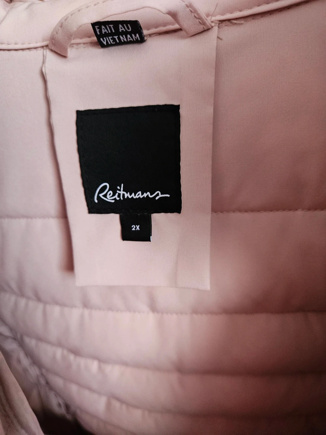 10Selling a Reitmans puffer coat in size 2X. It's a lovely light pink colour with a faux fur trim on the hood. Perfect for staying warm this winter!