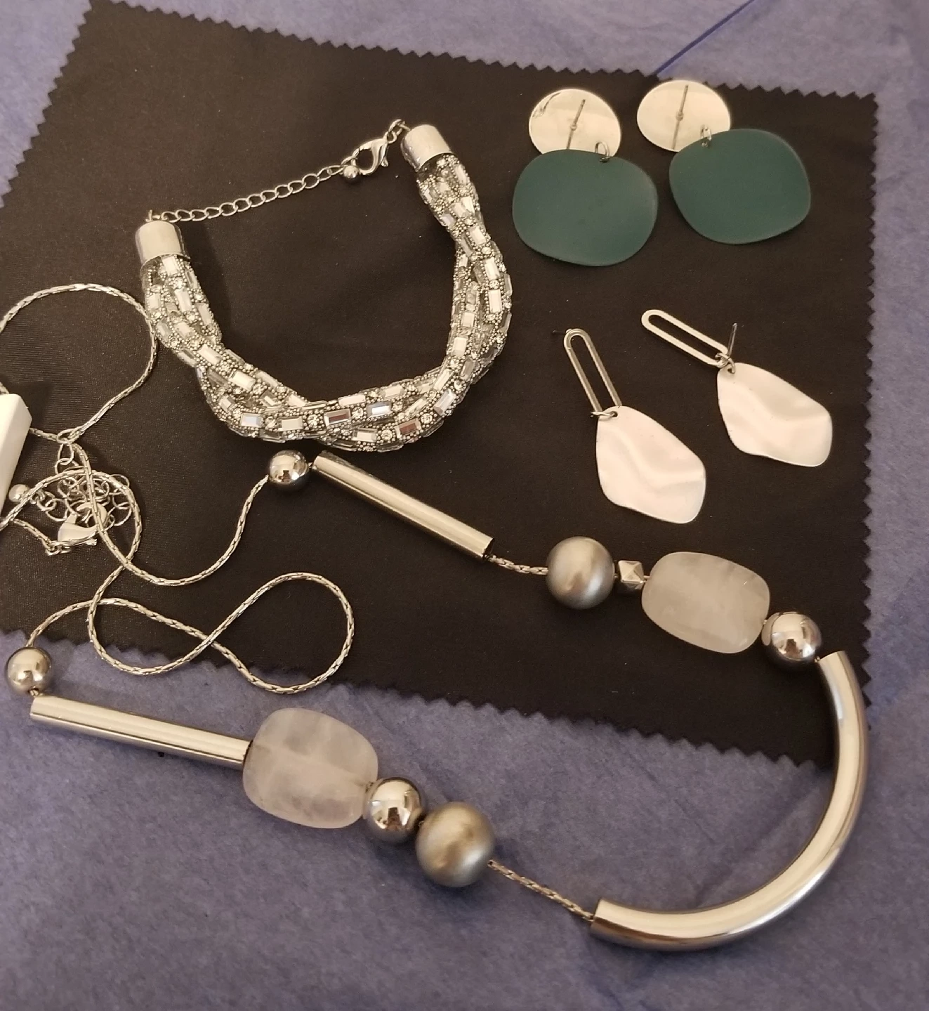 Hello Lovely ladies,. I am selling following items some are used/ barely used and some new Imitation/ fashion Jewellery ⭐NEW Silver Bracelet with chain. ⭐Silver ball long chain. ⭐Silver sleek style earings. ⭐ Silver and green earings. Let me know if this will be a gift. Purchased from Reitmans Store -Y&E Centre Location ***Sorry Final Sale, no exchange or return*** From a Pet free and Smoke free home. Only cash payment. Pick Up Yonge and Eglinton Centre 2300 Yonge Street outside Main Sephora Entrance Paid parking is available at Y&E Centre if you are driving. Thank you.