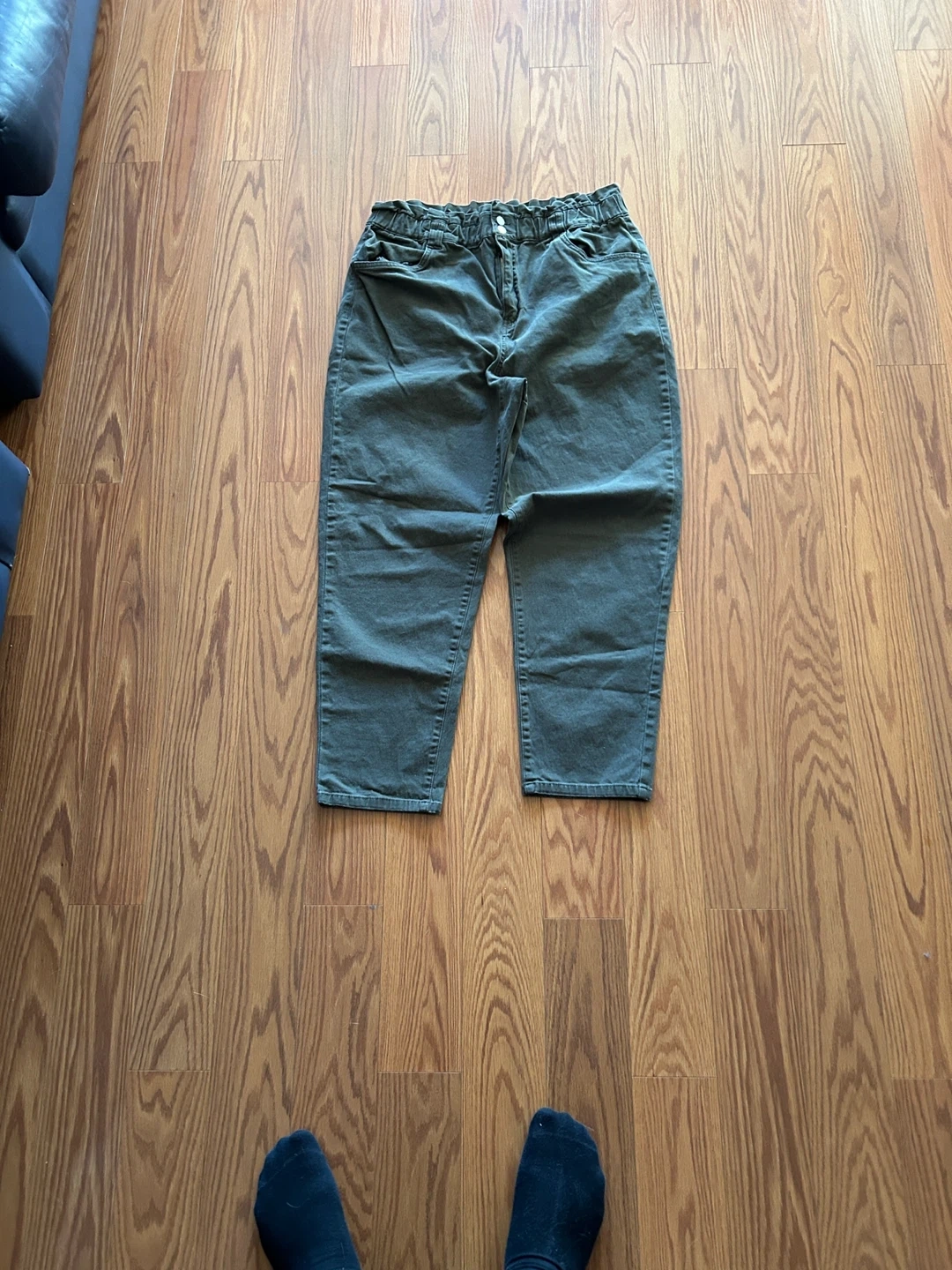 37Selling a pair of Reitmans pants in a lovely olive green colour! They are a size 14 regular. They have an elastic waistband for extra comfort