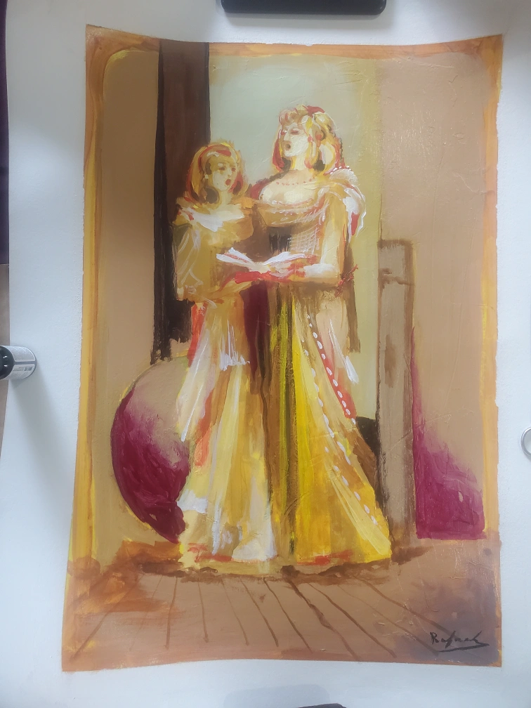 10Acryllic on Paper, hand signed by the artist, Rafael. Titled: Religious Touch, completed in 2010. Dimensions: 16" x 24"