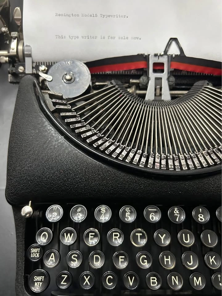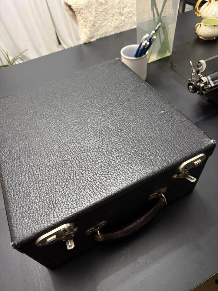 Selling a vintage Remington Rand Deluxe Model 5 typewriter, made in Canada around 1939–1940. • Serial #: CB20663 • Fully functional: all keys strike clean, carriage advances smoothly, ribbon advance works. • Comes with original case (intact, but with expected wear for 80+ years old). • I cleaned and tested it — it works well and is ready for use, display, or collection. • Decals and finish show some age/flaws, but overall it’s in good, honest condition. This is not a modern reproduction — it’s an authentic pre-WWII Canadian Remington Rand. Great for collectors, writers, photographers, or anyone who appreciates real mechanical machines.