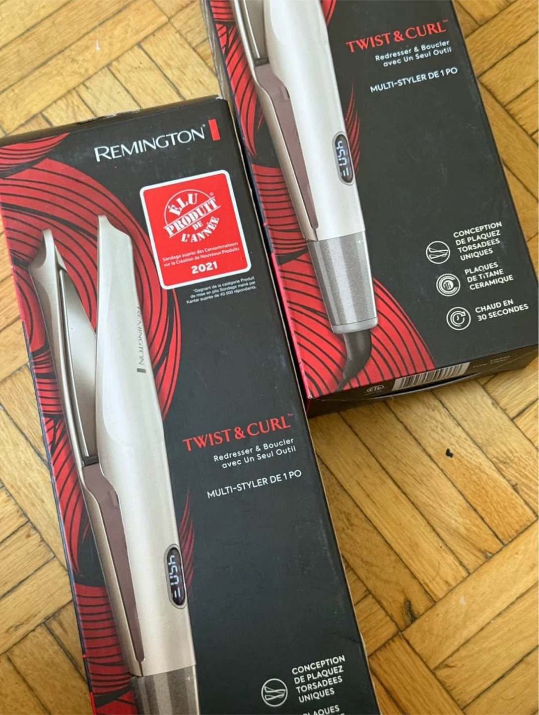60Selling a Remington Twist & Curl Multi-Styler in great condition! It's a redresser and boucler in one, featuring unique plates for creating twisted styles. It heats up in just 30 seconds and has ceramic titanium plates