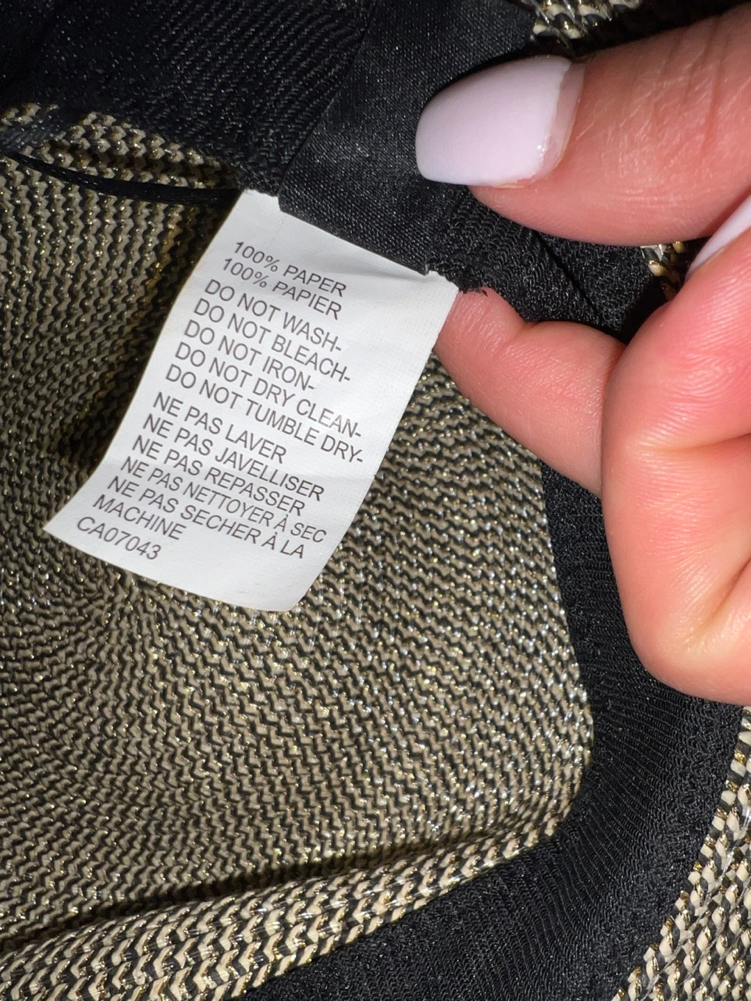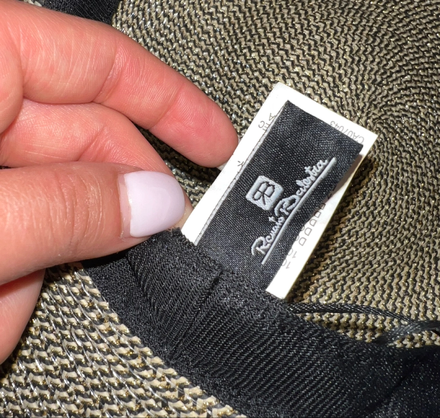 Stylish Renato Roberta hat made from 100% paper! It's a unique blend of black and beige, perfect for adding a touch of elegance to any outfit. No damage, like new
