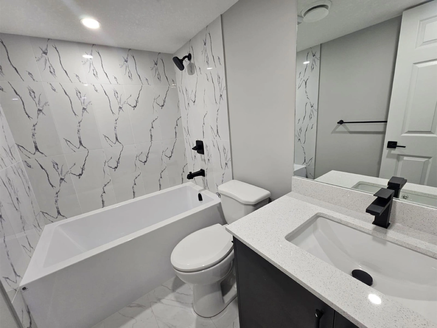 Navy Blue Patterned 3-Piece Bath Mat Set