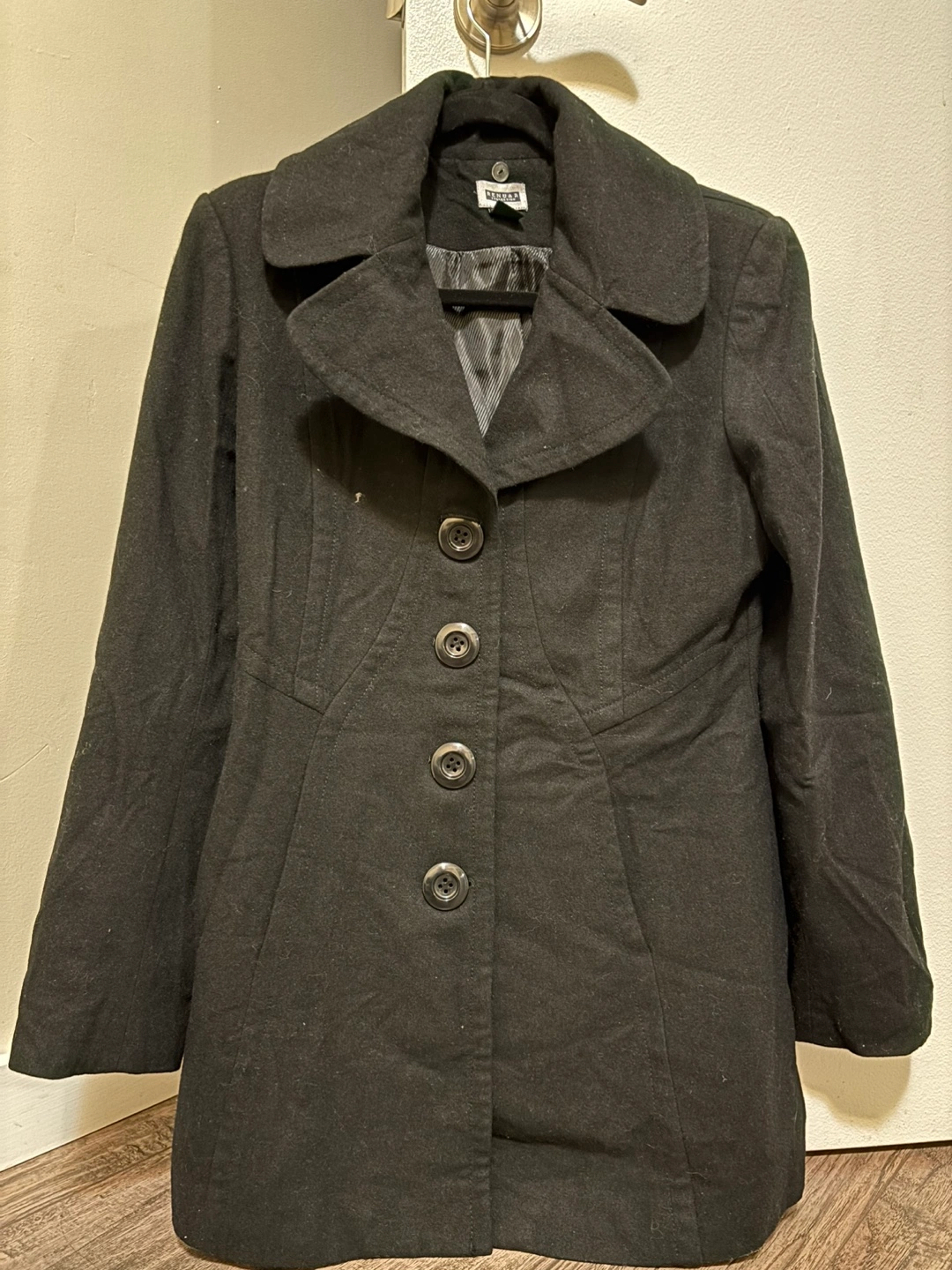 26Black peacoat with buttons. Size 10.