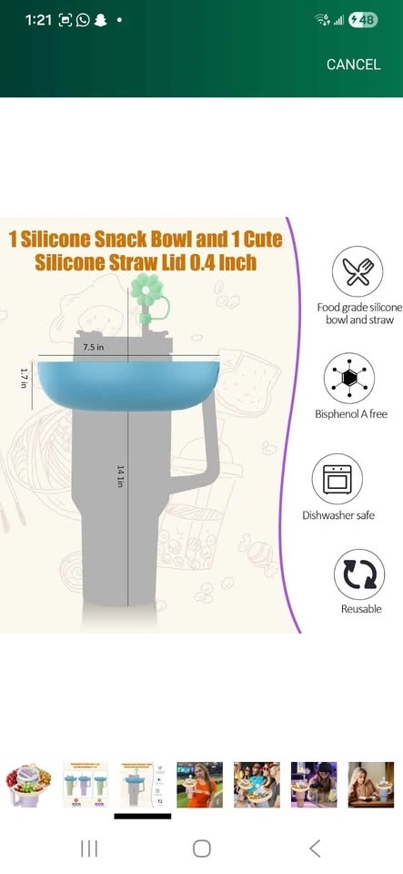 Brand new snack bowl for Stanley Cup 30 oz with handle. Perfectly compatible with Stanley Quencher H2.0 Tumbler 30 oz with handle. Reusable silicone snack tray. Stanley cup accessory. Cream color.