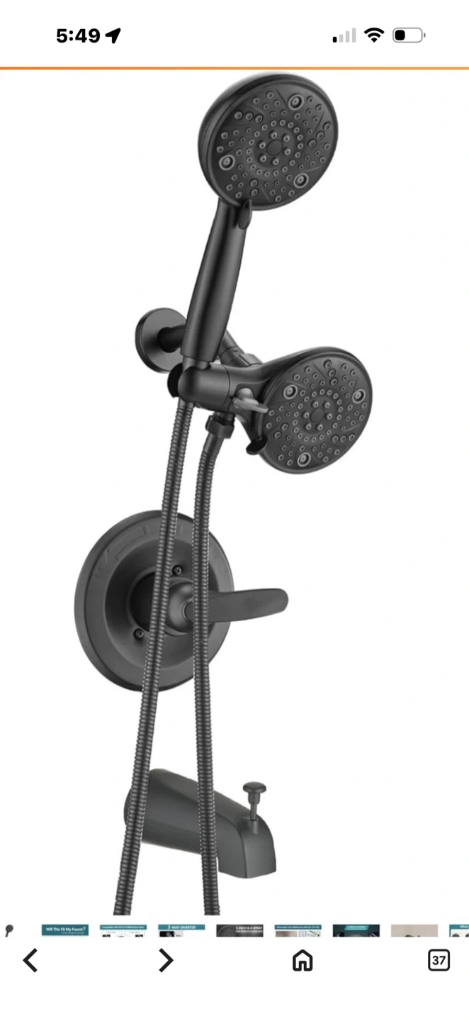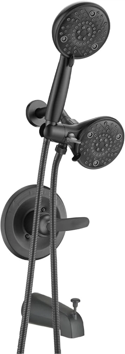 Selling a brand new Replacement 5" Dual Shower Combo Faucet Tub Trim Kit for Delta 13/14 Series, High Pressure Round Rain Shower Head& Handheld Set Faucet System, Matte Black (Valve& Catridge Not Inclued)