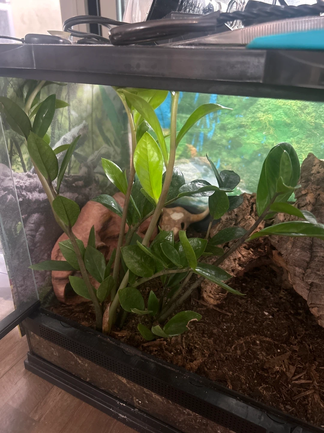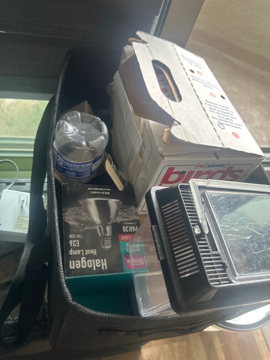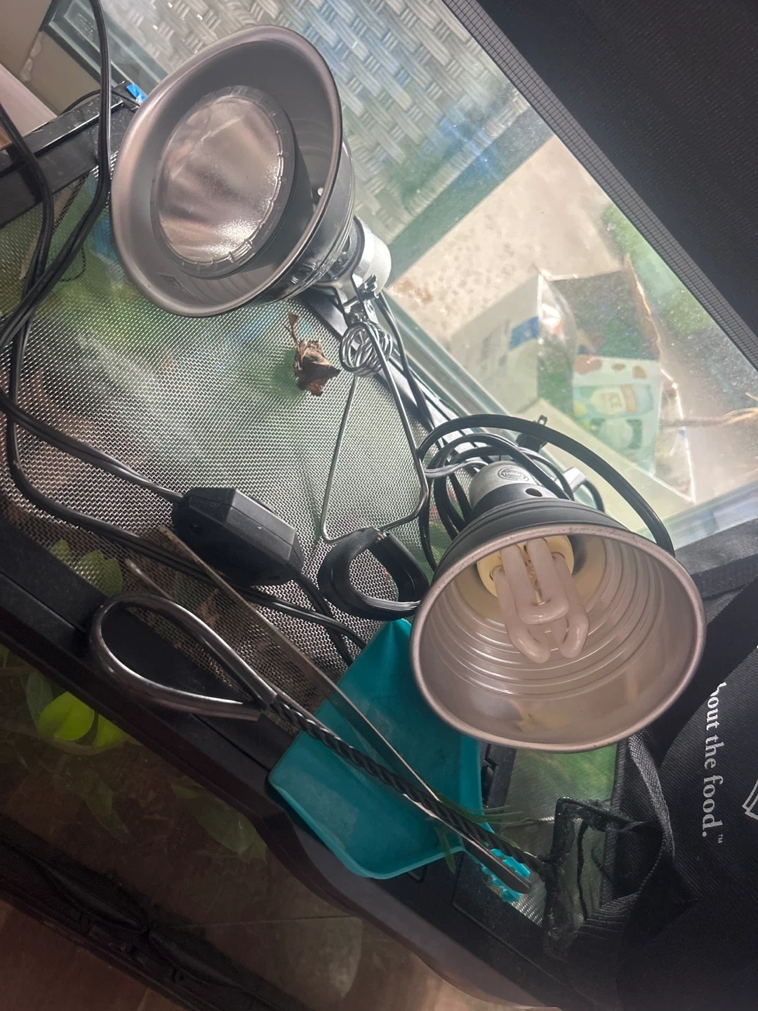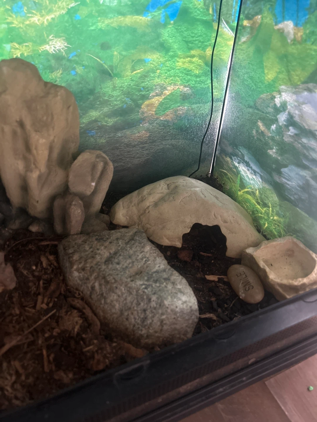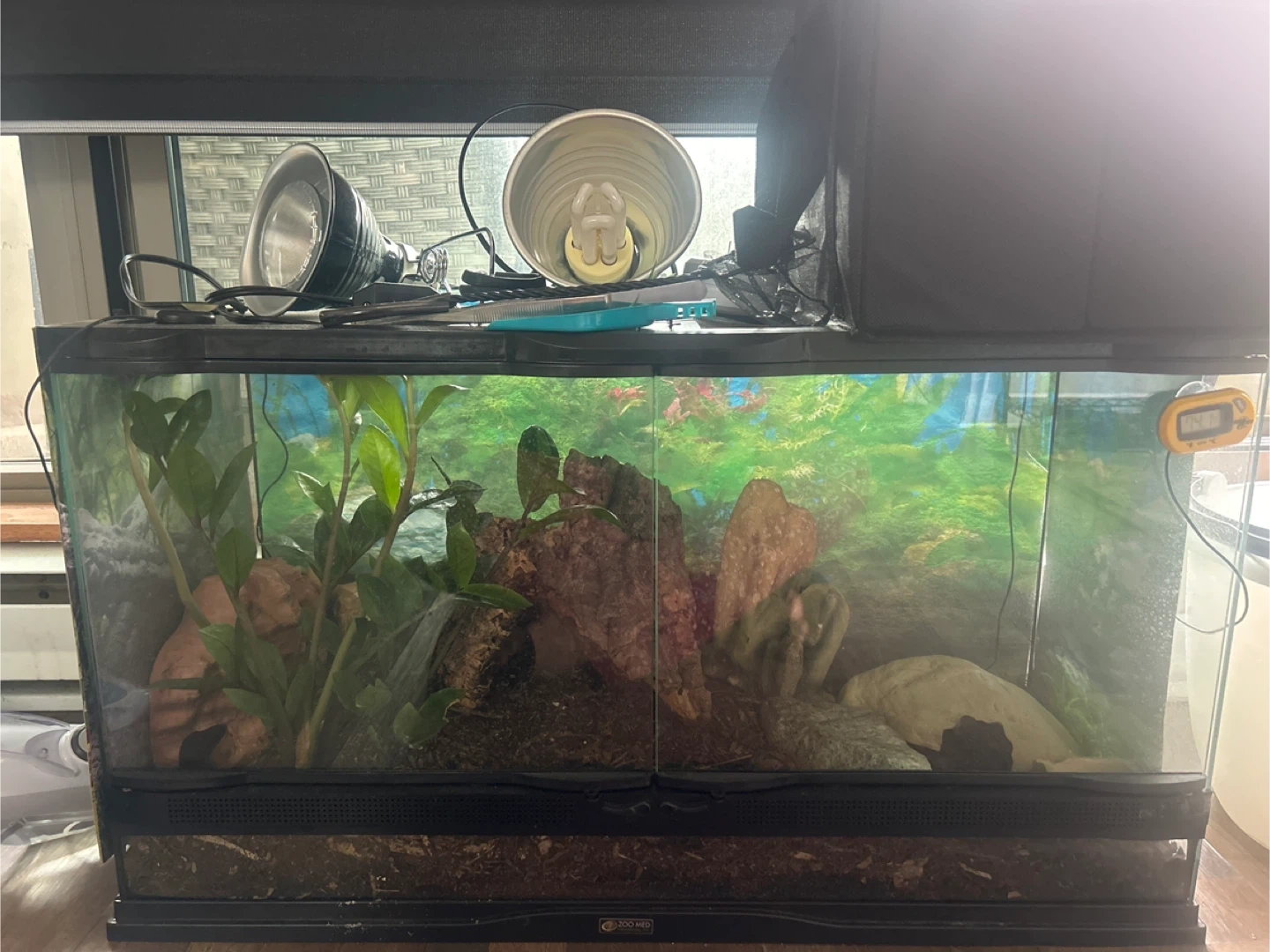 Selling a reptile habitat with various accessories. Includes 2 heat lamps, 2 thermostat, water dishes, and decorative rocks to make your reptile feel right at home. Live plant, bark, timed plug In., tweezers for feeding, poop scoop. All items are in good condition!