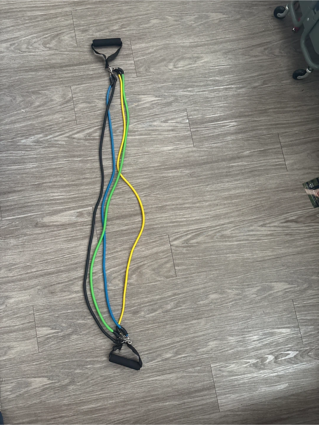 Selling a set of resistance bands! These are great for at-home workouts or taking with you on the go. They come in different colours, each representing a different resistance level, so you can customize your workout. Perfect for adding some extra intensity to your routine!