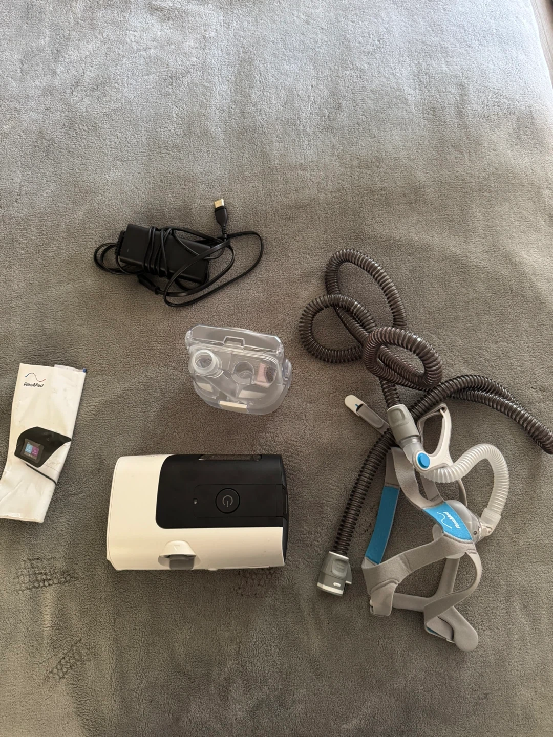 Selling a ResMed AirSense 10 CPAP machine! It comes with all the components you see in the photos, including the mask, humidifier, and carrying case. It's in great condition and ready to help you get a good night's sleep! Also includes the charger and instructions