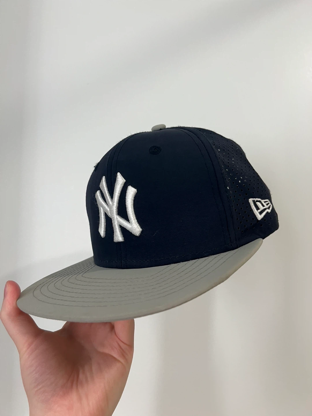 Selling a New Era 9FIFTY Original Fit Yankees hat in size small/medium. The hat is navy with a grey brim and the Yankees logo on the front. It's in great shape and very good condition. I bought it for $68 originally, only wore it for a few times, it is very new.