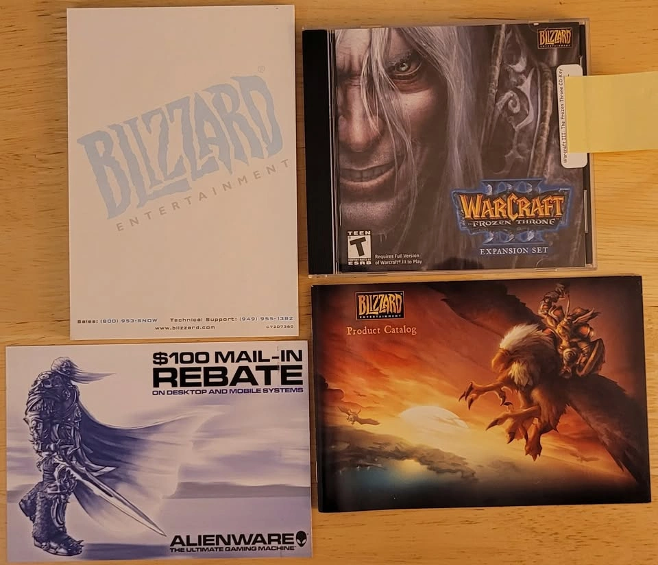 55Warcraft III Undead variant box and Frozen Throne expansion for PC. Original owner, comes with games and contents shown. Some wear on boxes (see photos), CDs in excellent condition, but I'm selling as-is since I haven't tested them. For pickup near Talbot and Albert in London.