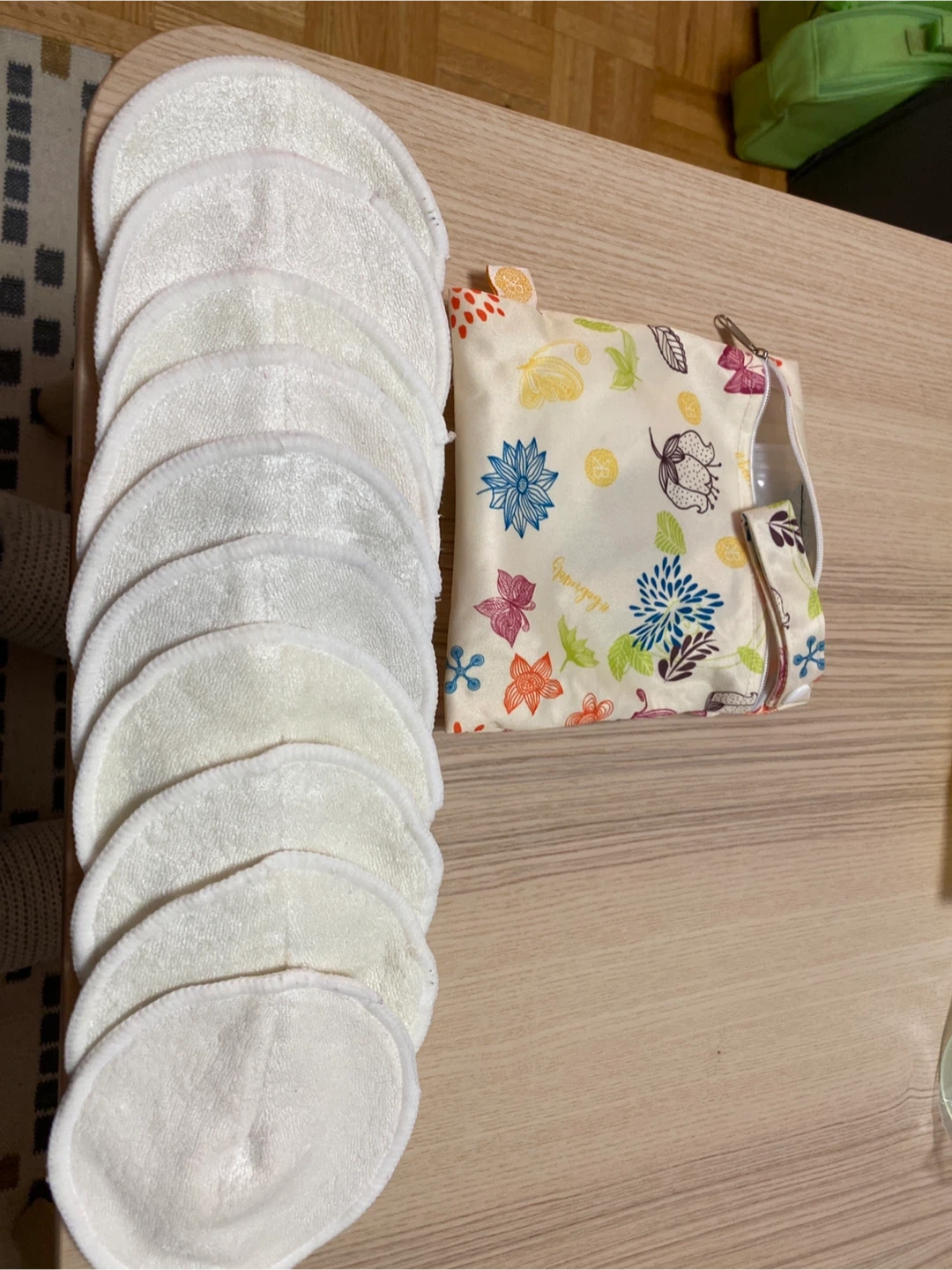 Selling a set of reusable nursing pads. They are white and come with a cute floral patterned bag for storage or travel. Perfect for new moms!