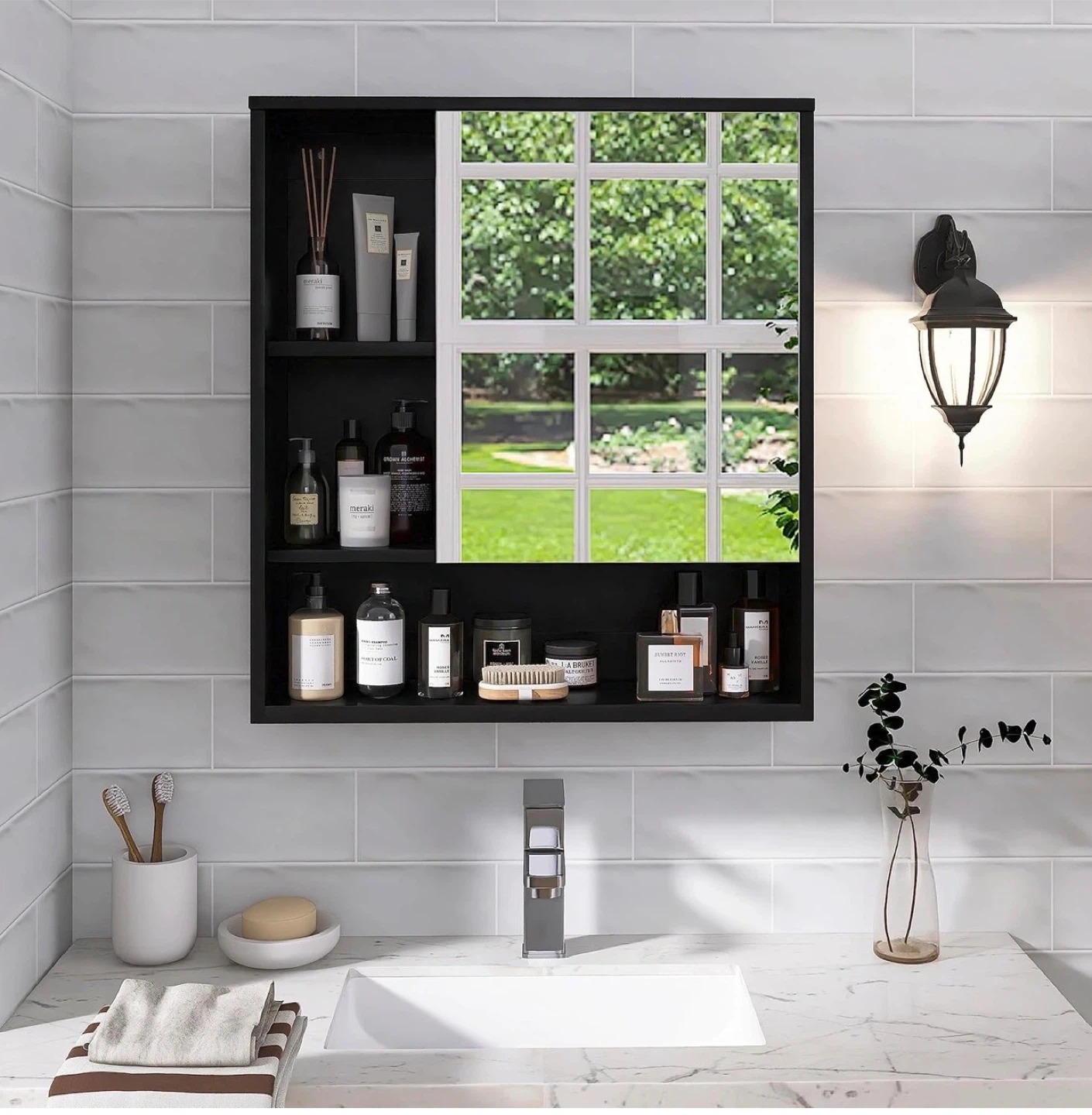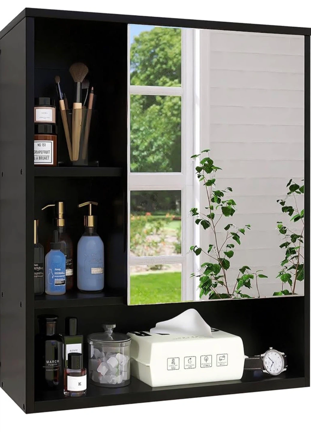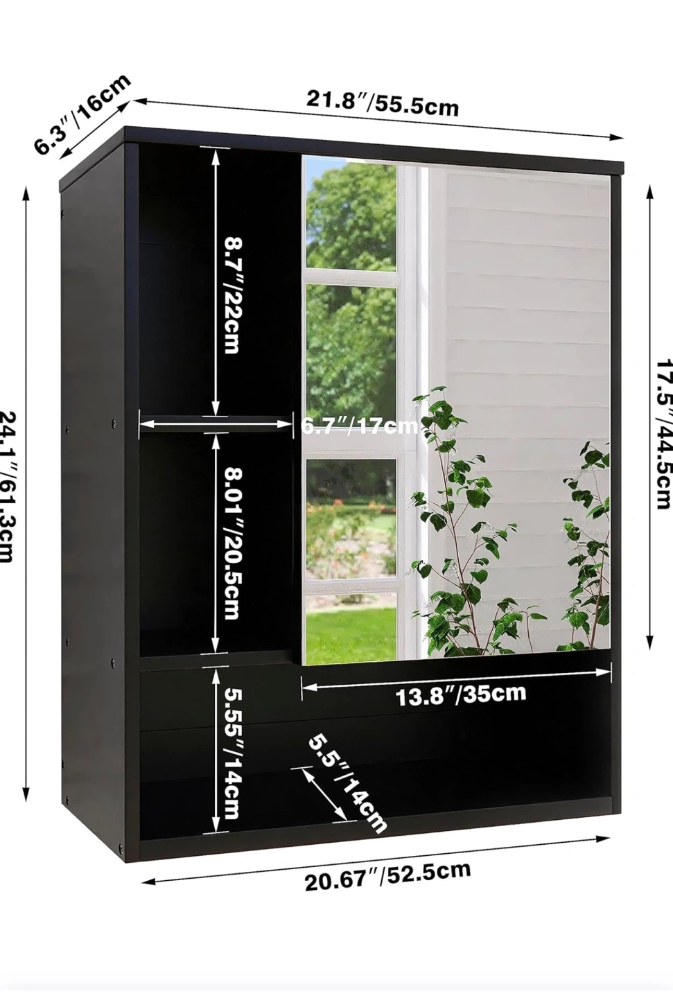 ★ SPACIOUS STORAGE SPACE: this medicine cabinet features a fixed top shelf, 2 shelves inside the doors and 1 open fixed shelf at the bottom giving you ample storage space. The middle layer shelf inside the door has 3 adjustable heights to meet your different storage needs. The open shelves allow you to quickly view and access the essentials for daily use