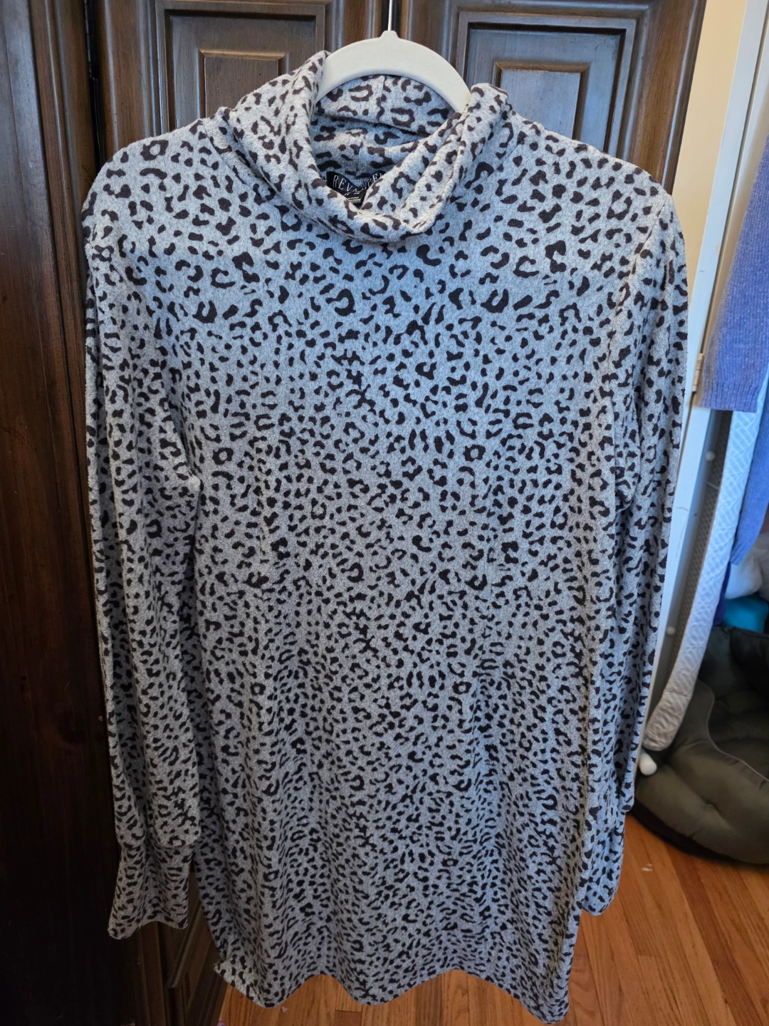 63Grey and brown leopard print mock neck long sleeve sweater. Size XL. Soft material.