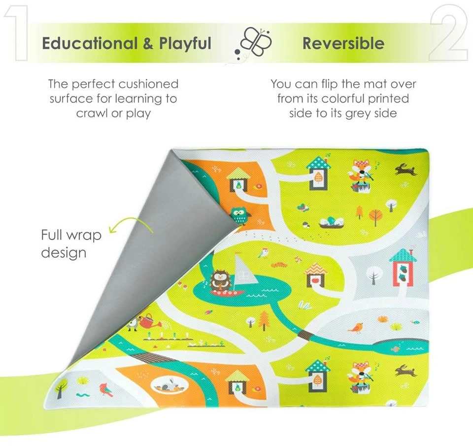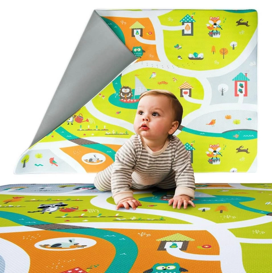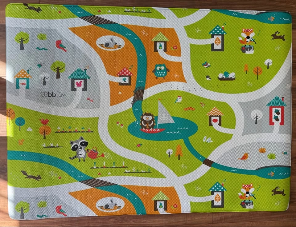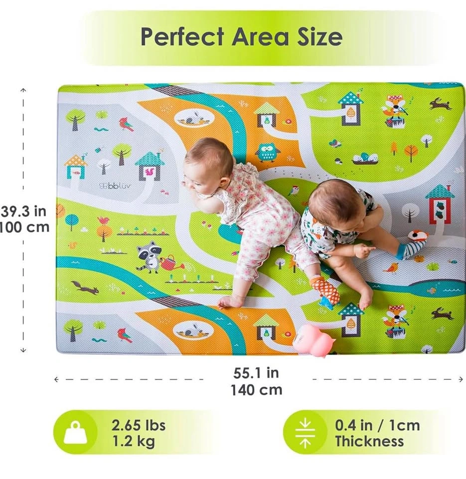 Pet and smoke-free home. Cash only, please! bblüv – Mülti - Reversible Baby Play Mat - Foldable Baby Floor Playmat with Water-resistant Foam, 55"x39", Infant Crawling & Kids Play Mat Foam