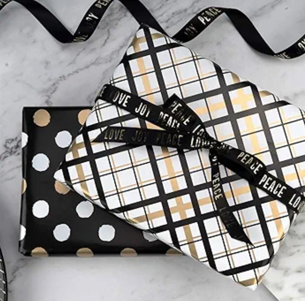 Perfect for adding a touch of elegance to your presents! Reversible with a different pattern. Two different designs make beautiful and varied gift presentations easy. 17inX33ft