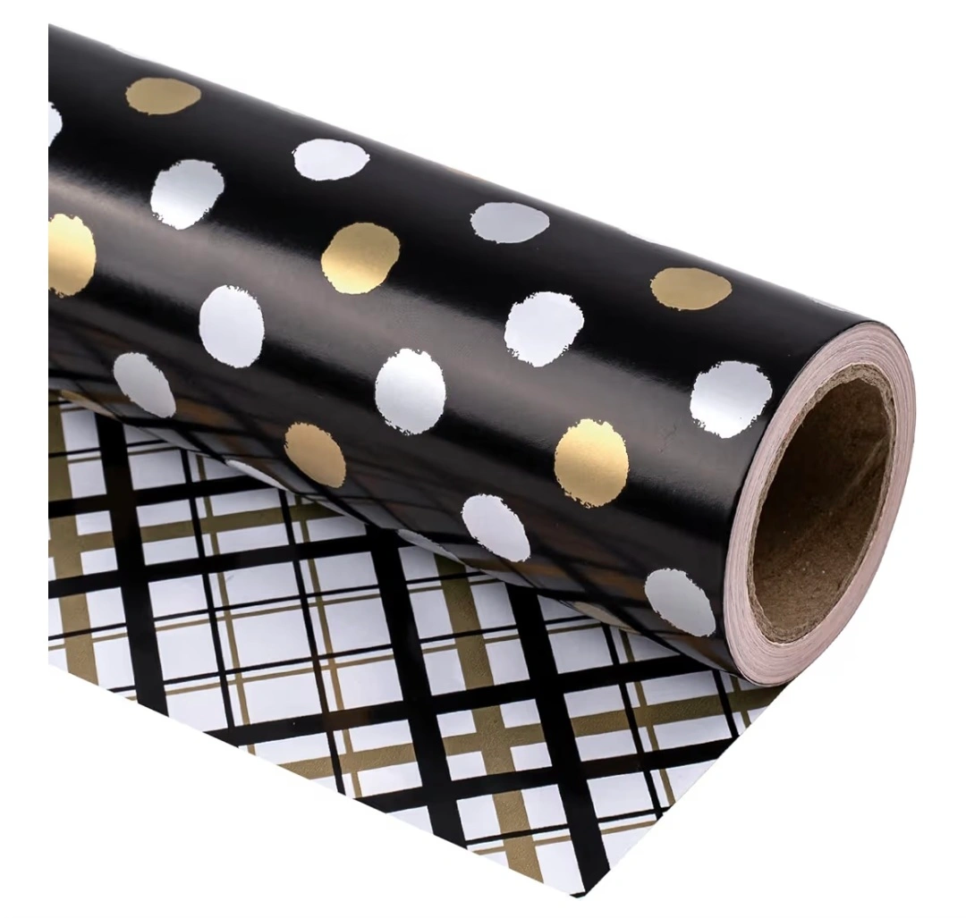 Reversible Black and Gold Polka Dot Wrapping Paper 17inx33ft