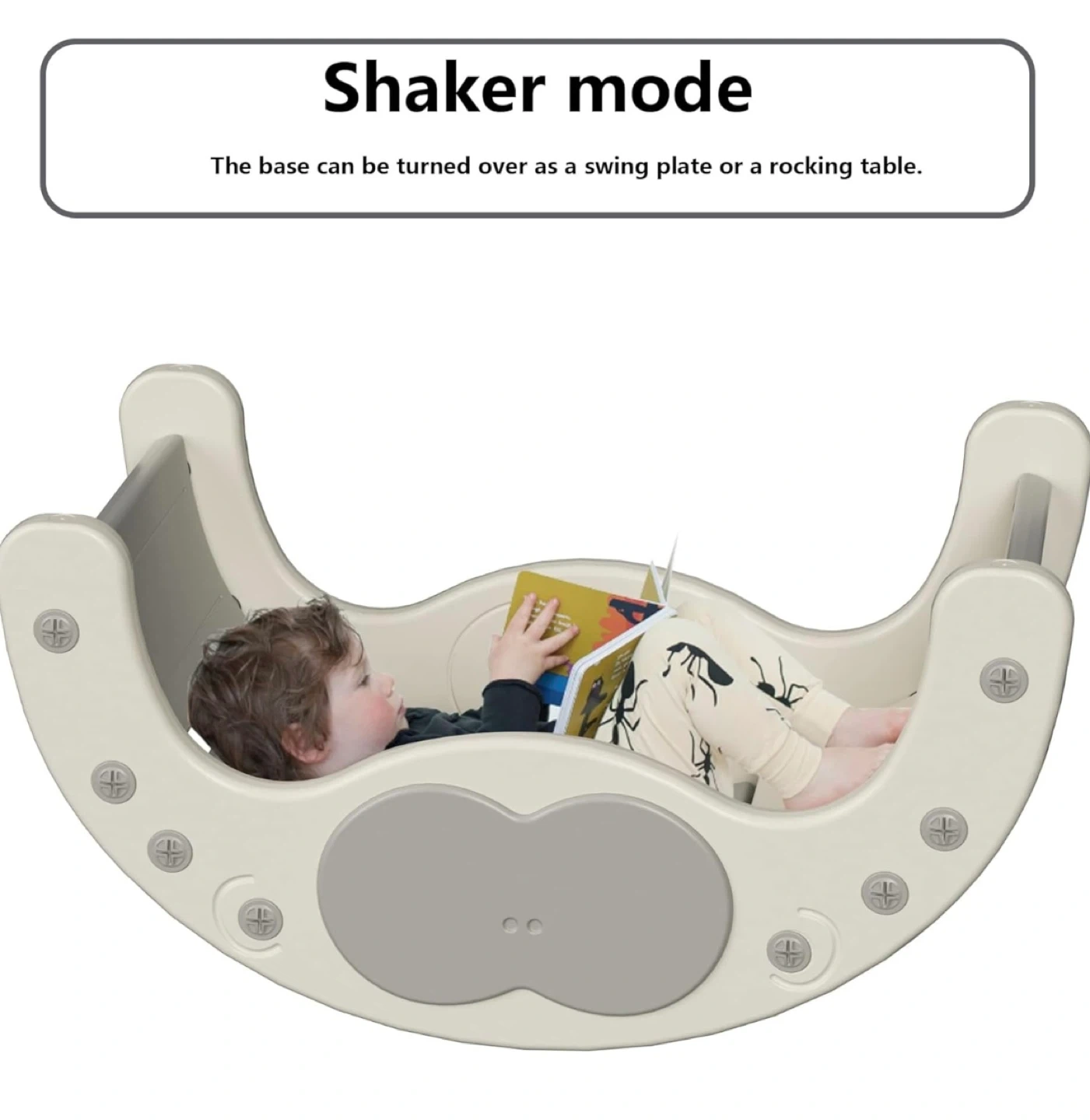 177This reversible climbing board and slide plate is perfect for active kids! One side features a slide, while the other side has climbing holds. It's made of durable and high load-bearing HDPE material, with a max bearing capacity of 200LB. The base can also be turned over as a swing plate or a rocking table. Dimensions include 15.4in (39CM) x 29.5in (75CM) x 15.4in (163CM).
