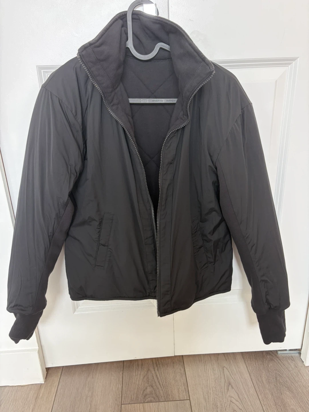 77Embrace unpredictable weather in this reversible, insulated jacket. Wear the quilted side out to stay warm and when the weather turns wet, turn it to the water-repellent side. Cotton Terry fabric is naturally breathable and soft against your skin and Glyde fabric is water-repellent to protect you from light rain. It's in great condition and ready for a new home!