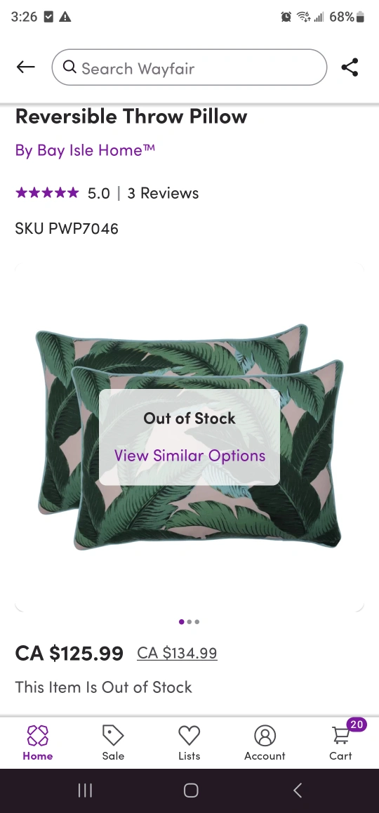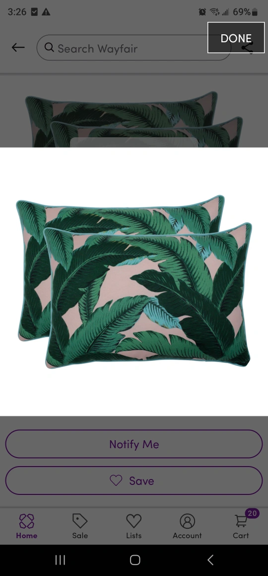 102Set of 2 reversible throw pillows with tropical leaf pattern. Out of stock.