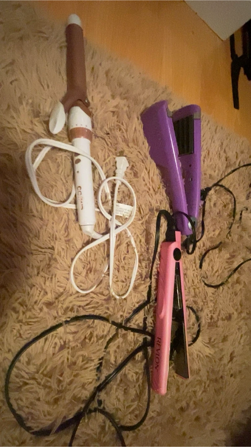 60Selling a set of hair styling tools including a Revlon flat iron and a Conair curling iron. Both are in good condition and ready to help you create your favourite hairstyles!