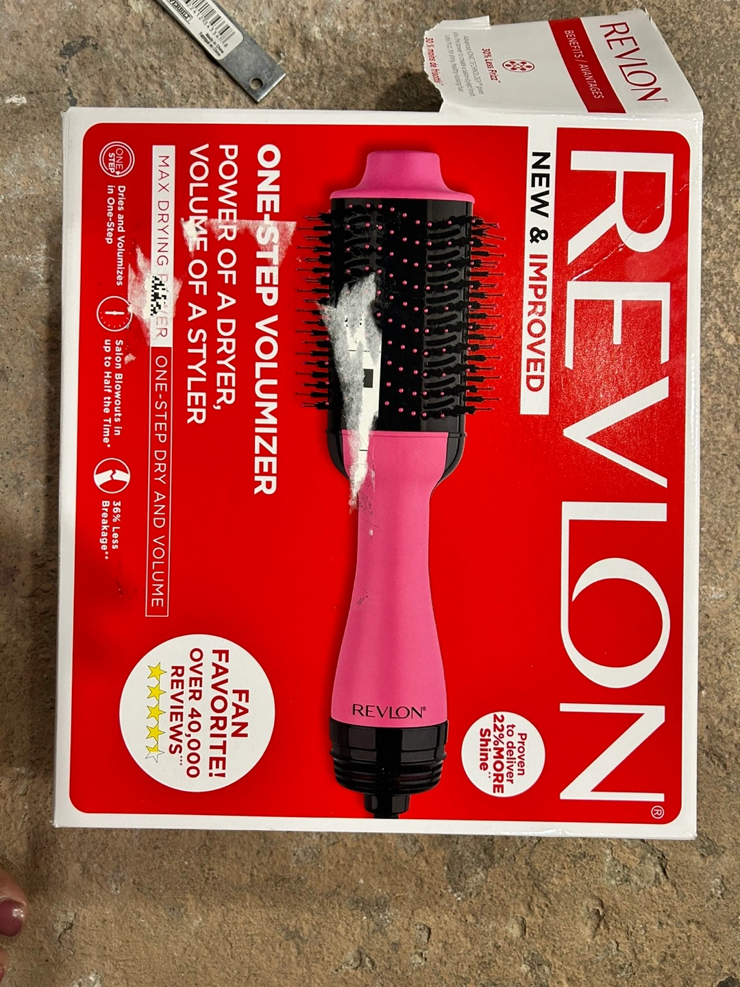 34Selling a Revlon One-Step Volumizer. This is a power of a dryer, volume of a styler! It's designed for max drying power and gives one-step dry and volume. Salon blowouts in up to half the time! Less breakage too. Box is little ripped.