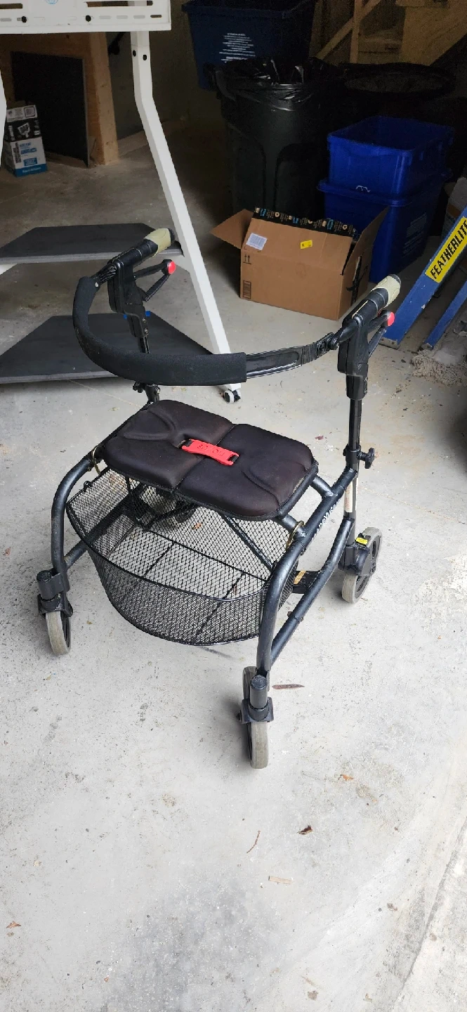60Selling a Revue rollator walker in good condition! It comes with a seat and basket, making it convenient for errands or walks. It's a great mobility aid for anyone needing a little extra support