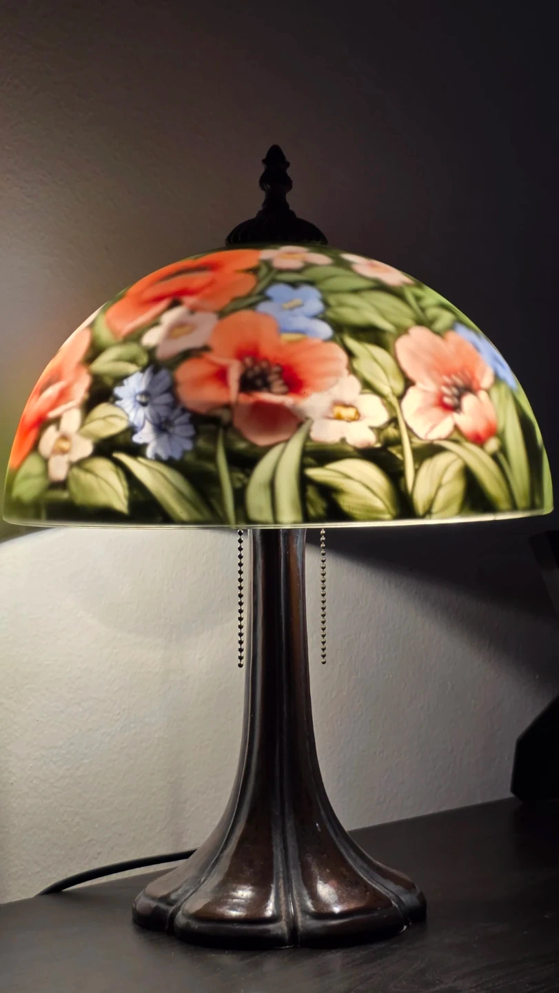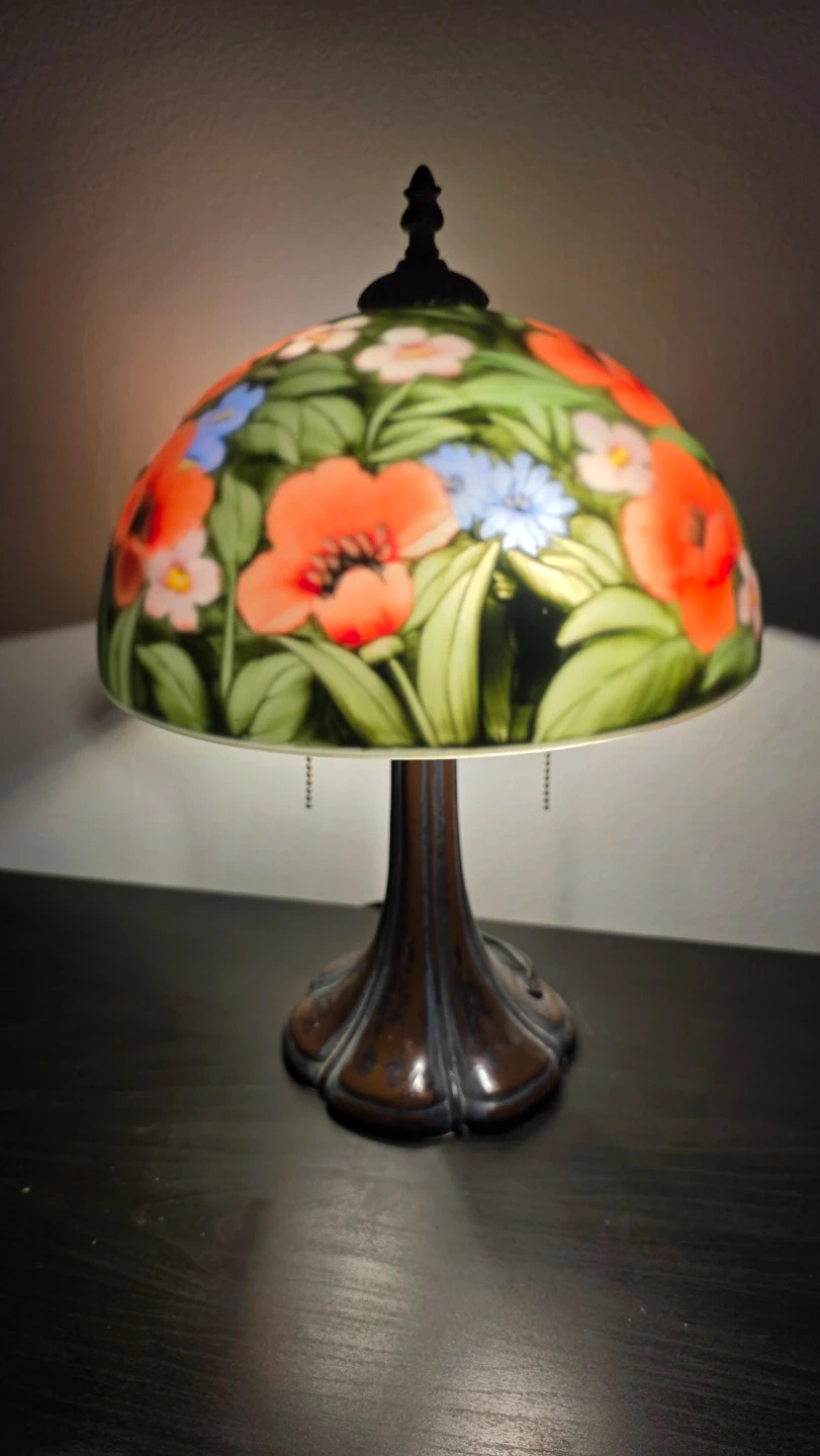 Antique Reverse Hand Painted Lamp