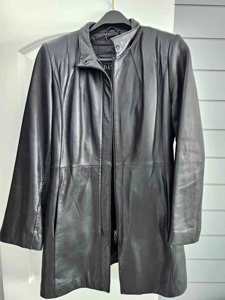 This DANIER leather coat is in very good condition and is great for cooler weather with its removable "Thermolite Active" insulation layer. It features a two-way zipper, making it a wonderful car coat for driving or travel. This coat has been well cared for and comes from a smoke-free, pet-free home. Please see the attached photo for sizing; in Canada, this is considered a petite size. Pick up is in the Guelph General Hospital area.