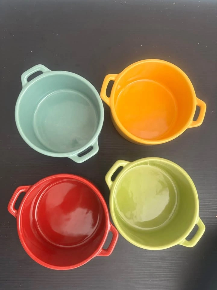 Set of 4, 14 oz oven safe stoneware. These are going for about $40 online for just half a set, so this is a great deal for the whole thing!
