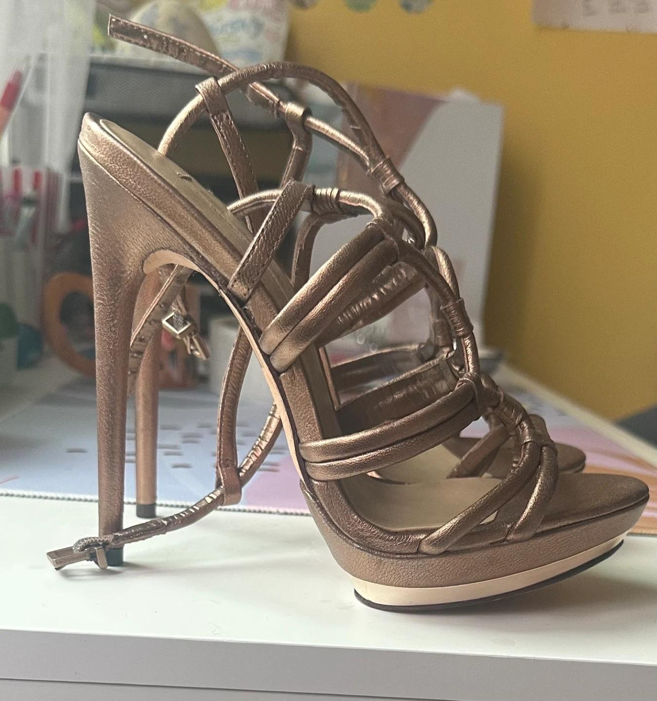 Selling a pair of BCBG heels. They are a beautiful metallic colour and size 7. These are in good condition and ready for a night out!