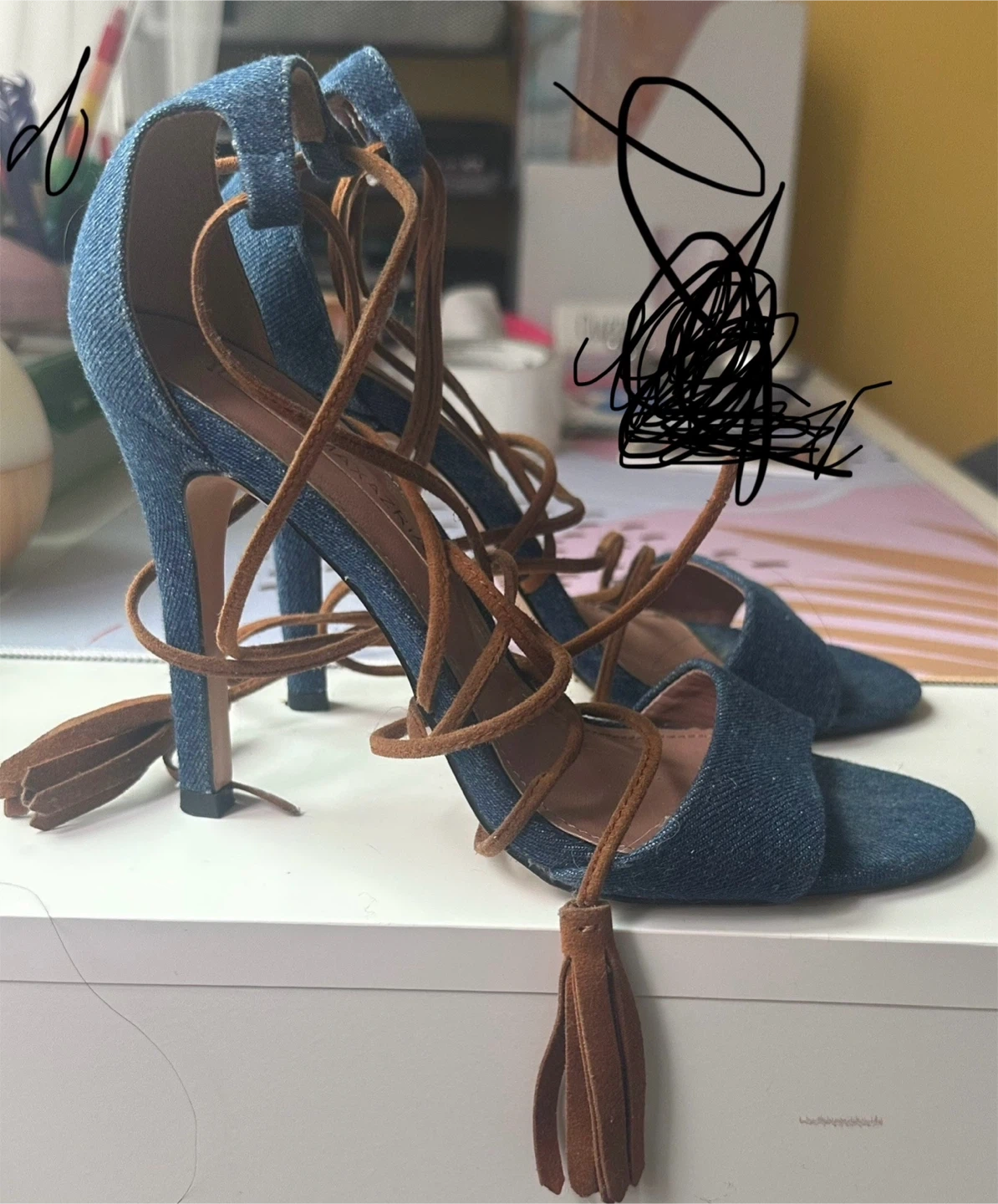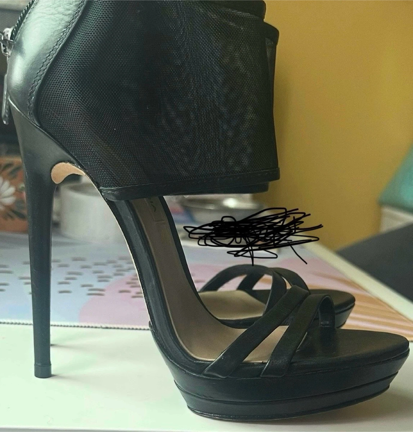 BCBG , black , Jean , rose gold and grey heels, Size 7