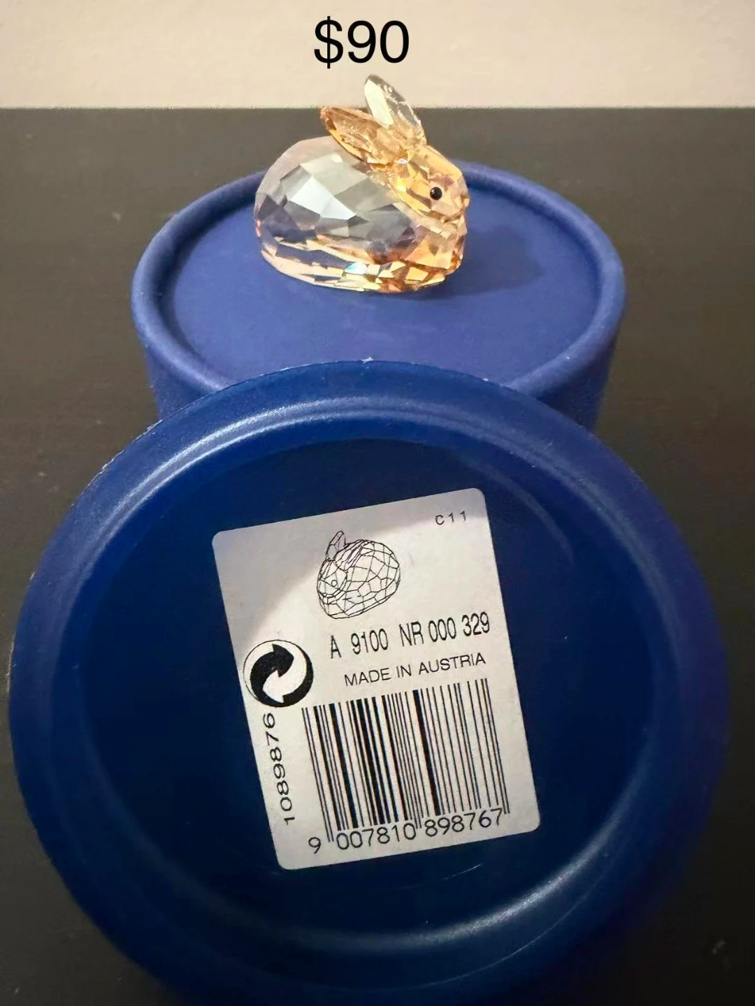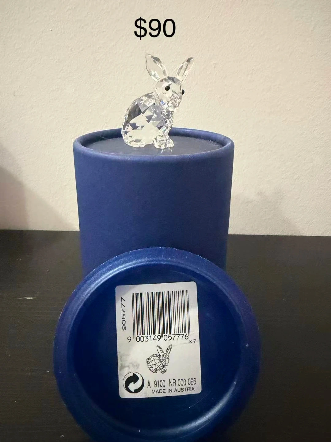 These are authentic Swarovski crystal bunny figurines, crafted in Austria. They come with their original boxes and packaging. Perfect for collectors or as a delicate decorative accent!